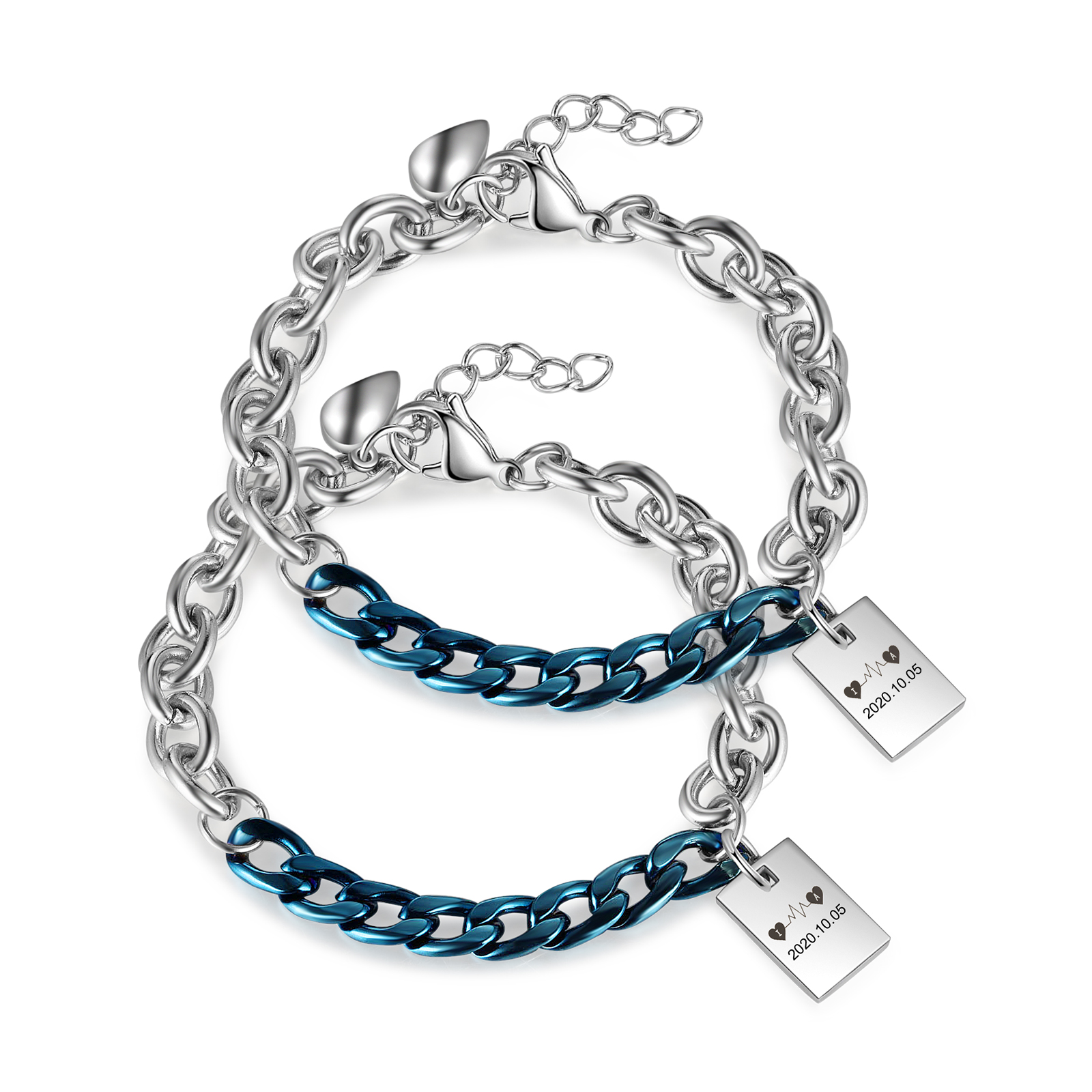 Personalized Cuban Chain Couple Bracelets ID Bar Pendant Love Matching Bracelet Valentine's Gifts