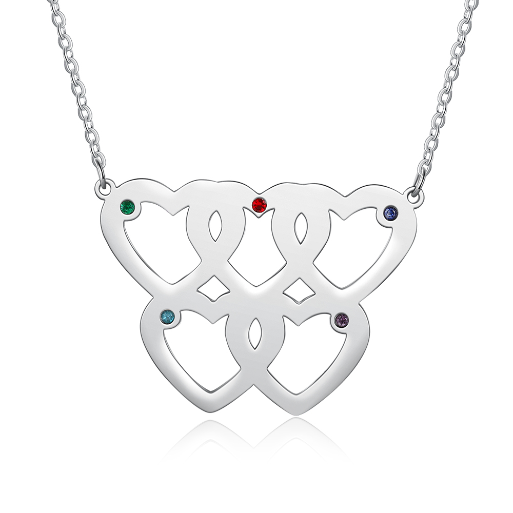 More: 5 heart intertwined pendant, Custom birthstone necklace with names, Mother daughter necklace with heart birthstones, Gift for Mom