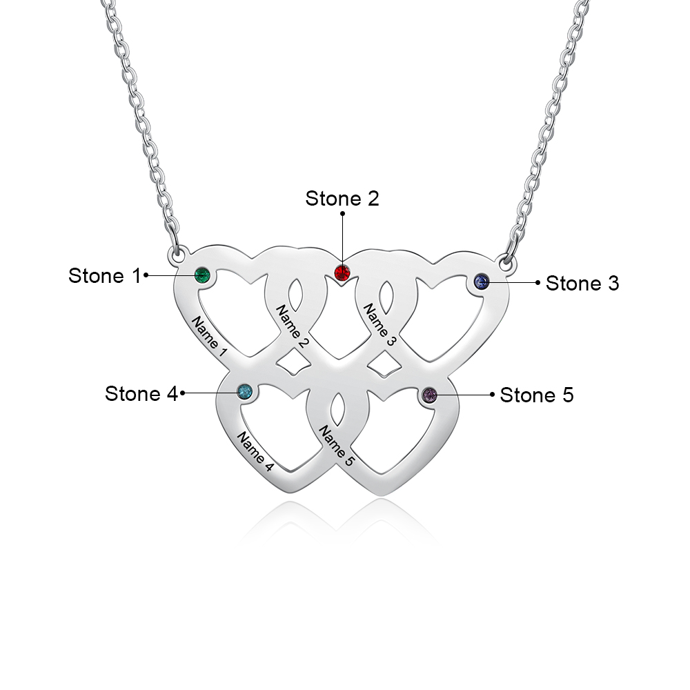 Personalized Heart Necklace with 5 Birthstones Engraved 5 Names Gifts for Mom