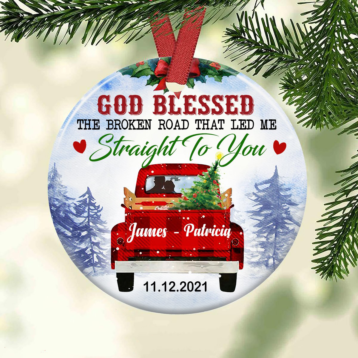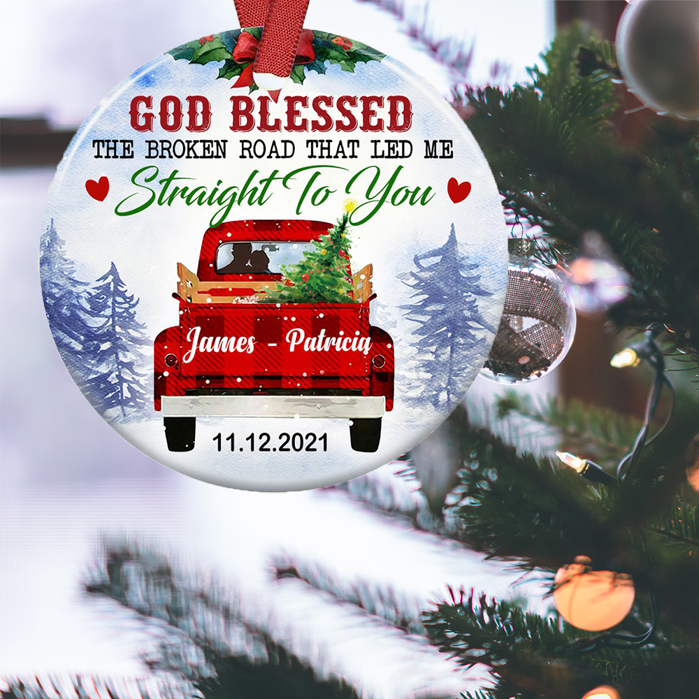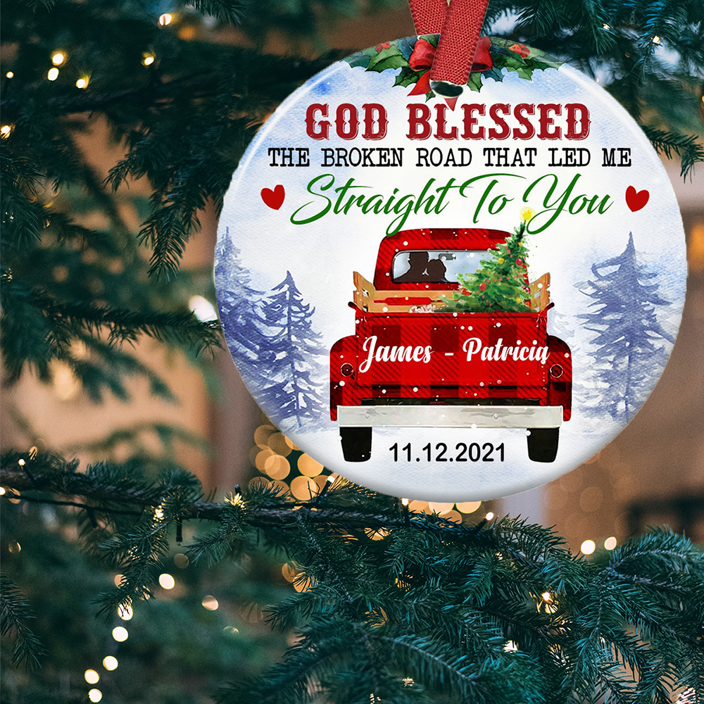 Personalized Names God Blessed The Broken Road Ornament