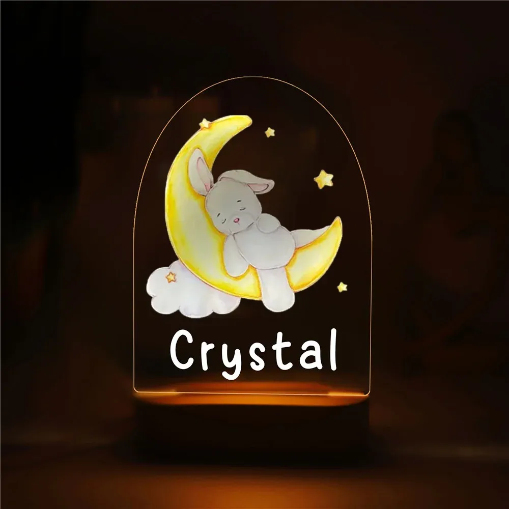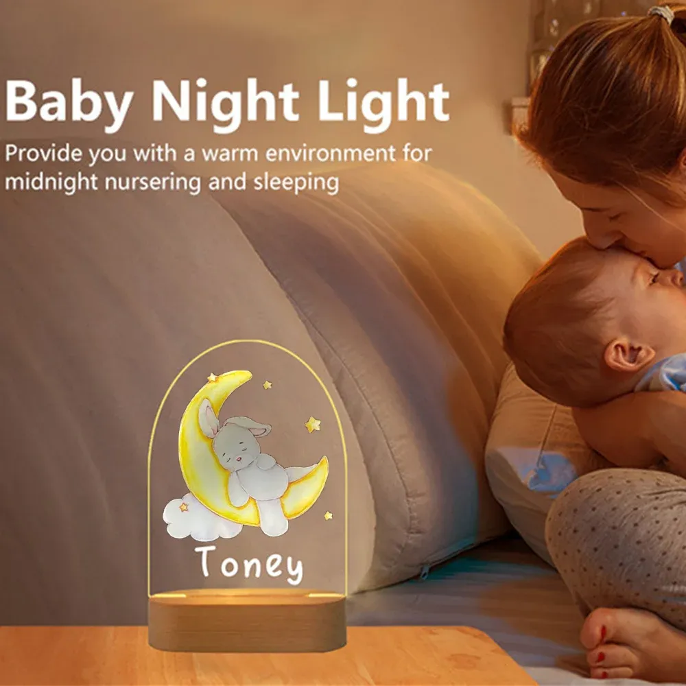 Personalized Sleeping Rabbit Night Light Bunny Custom Name LED Lamp Baby Gift for Kids