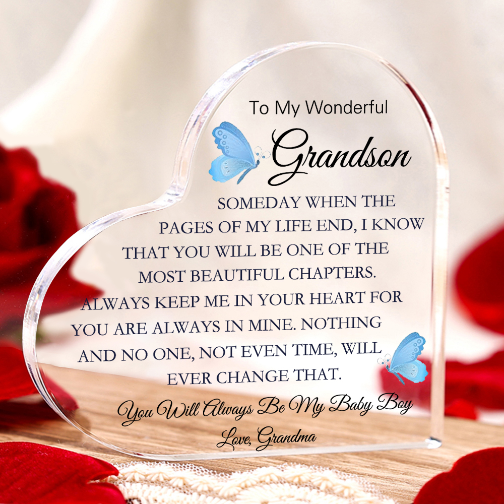 ❤️ Cherish the love with our Acrylic Heart Keepsake for grandsons and granddaughters!