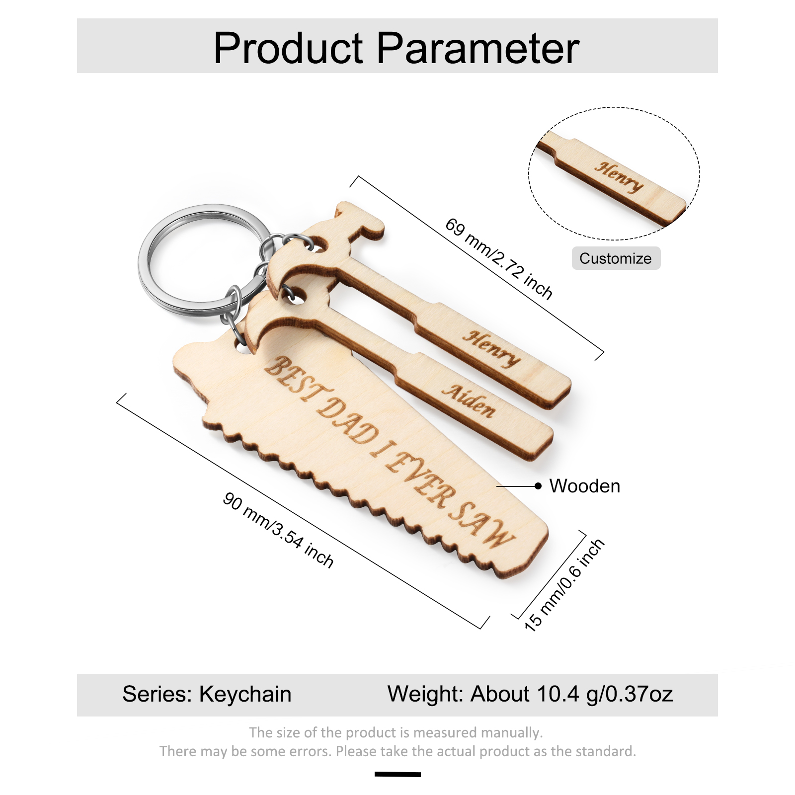 Personalized Tools Wood Keychain Engrave 2 Names Gifts for Dad