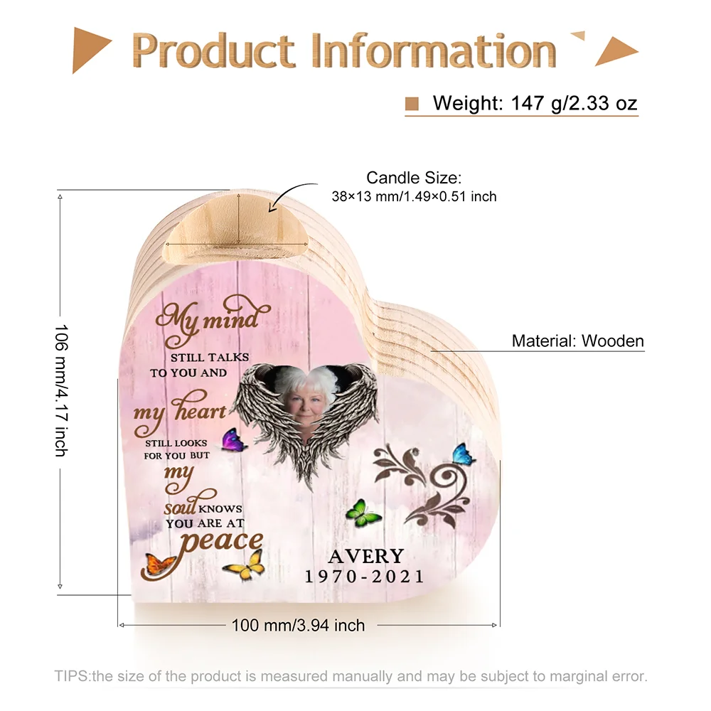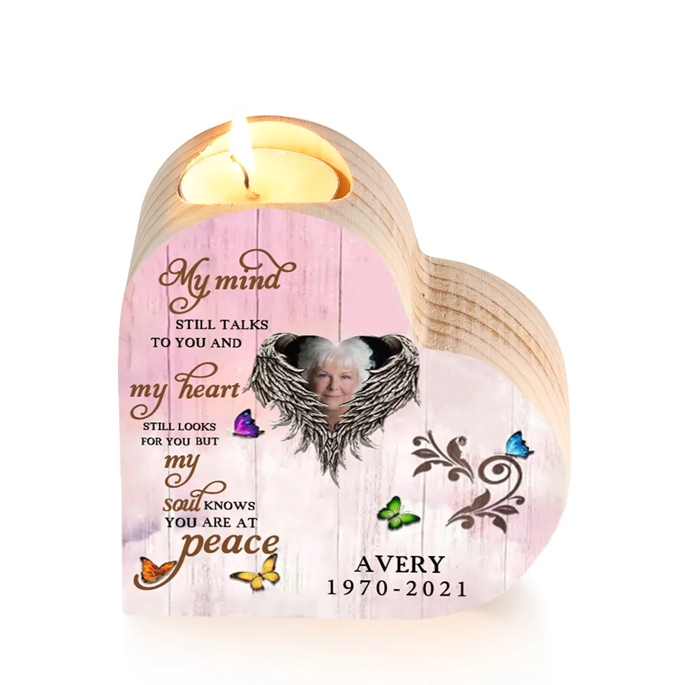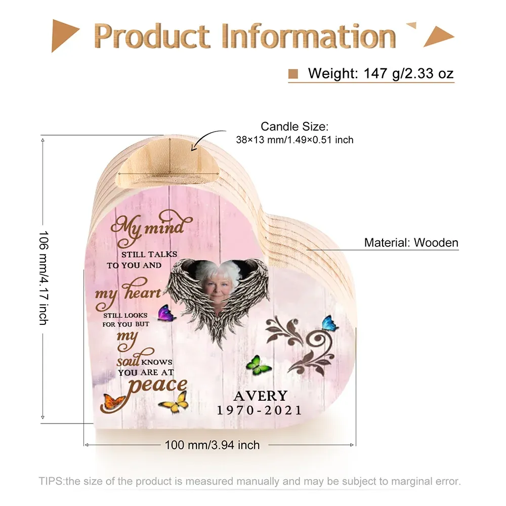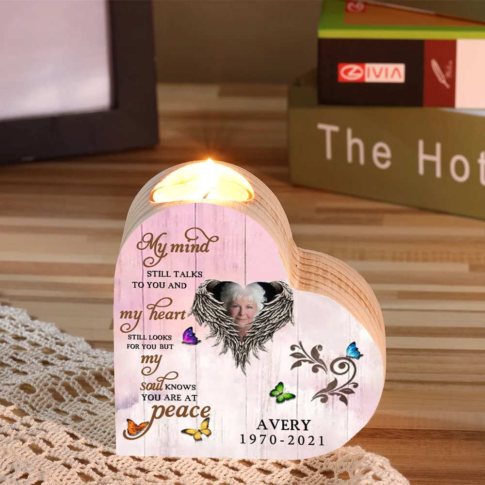 Personalized Wooden Heart Candle Holder Memorial Candlesticks "My mind still talks to you" Gifts For Lost of Loved One