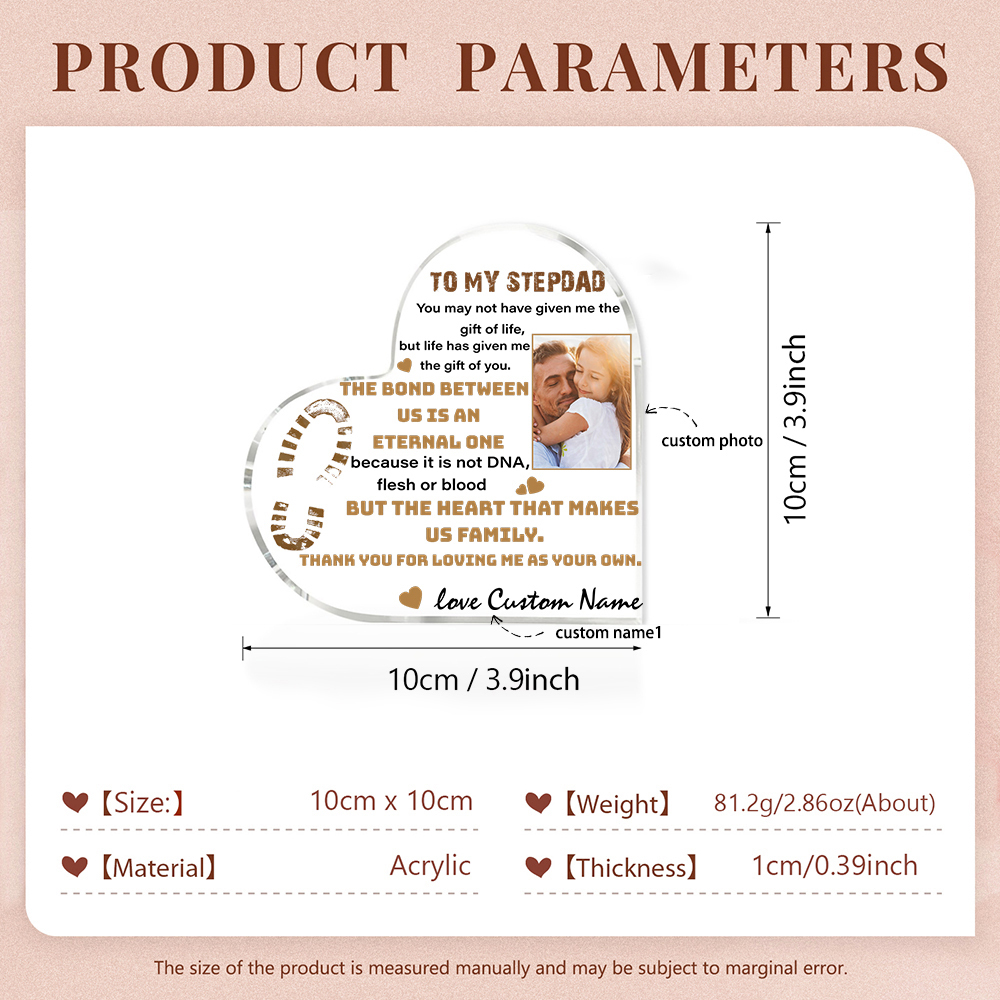 To My Stepdad Personalized Acrylic Heart Keepsake Custom Photo Sign Plaque - THE BOND BETWEEN US IS AN ETERNAL ONE