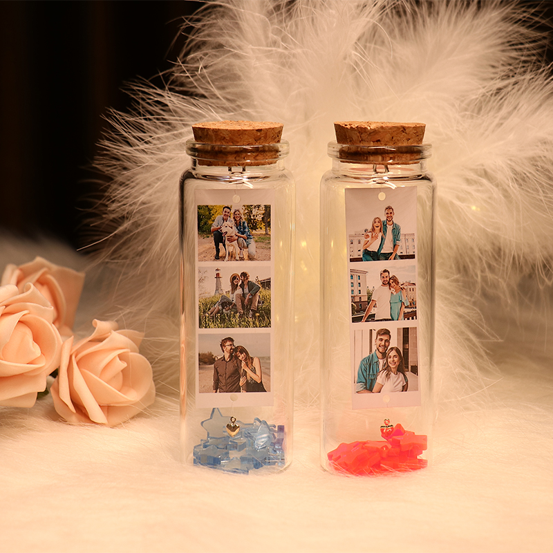 Personalized Photo Wishing Bottle with 3 Pictures Romantic Gifts for Couple
