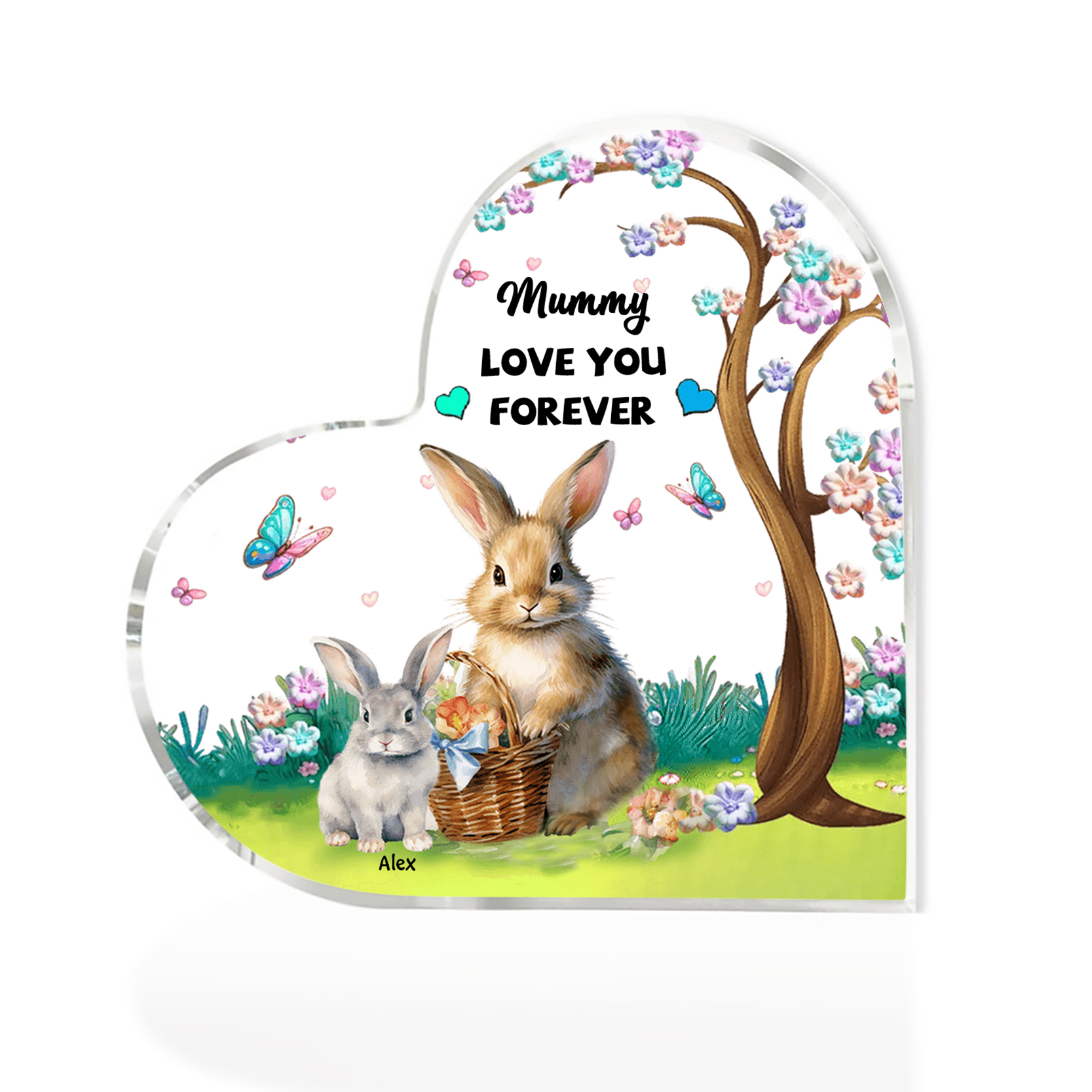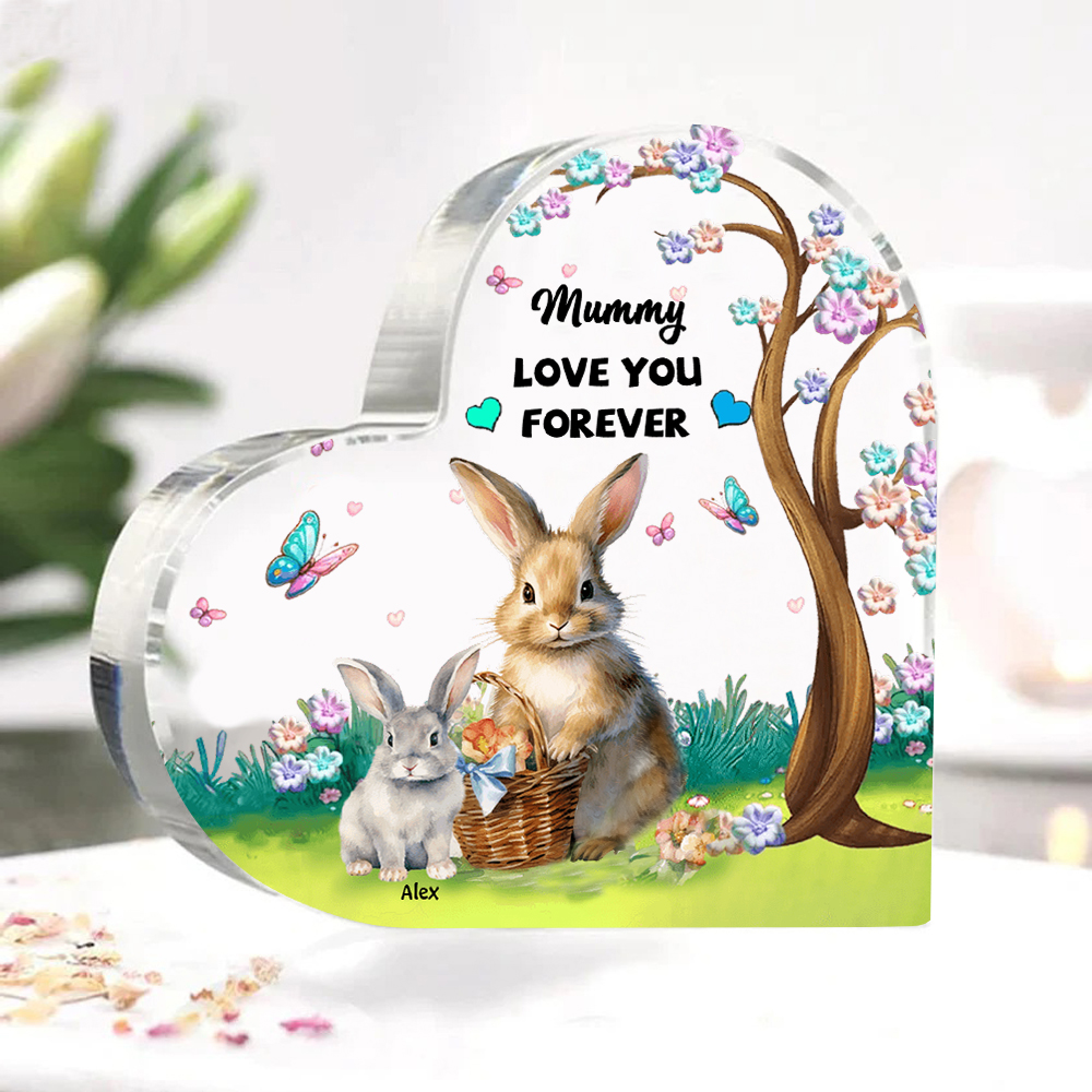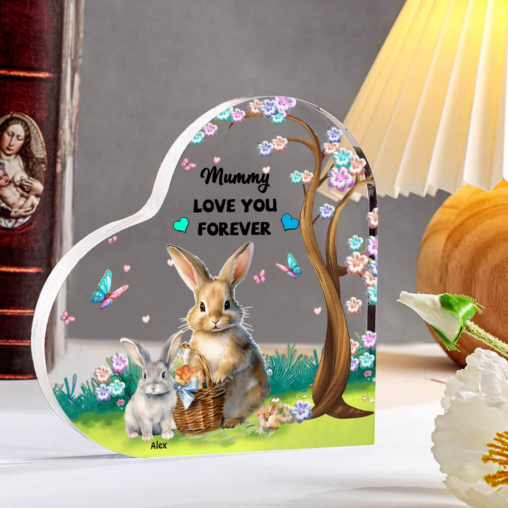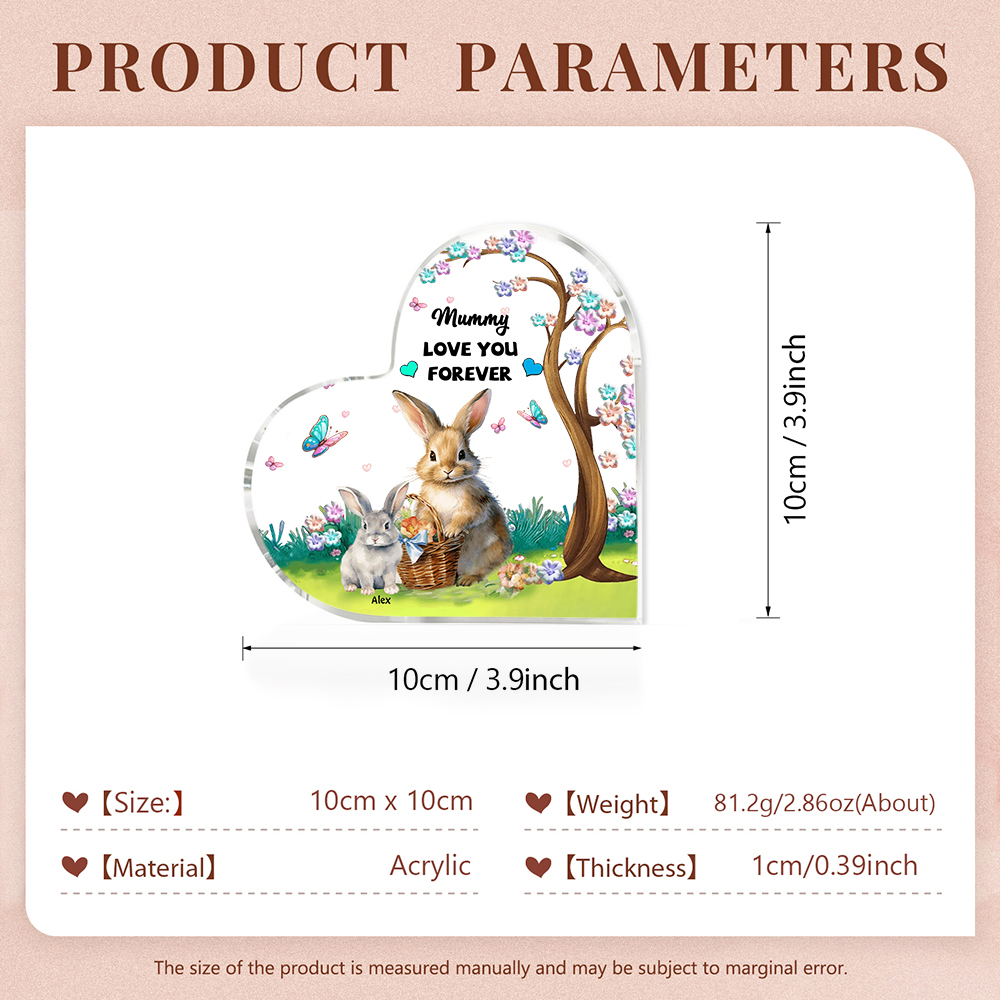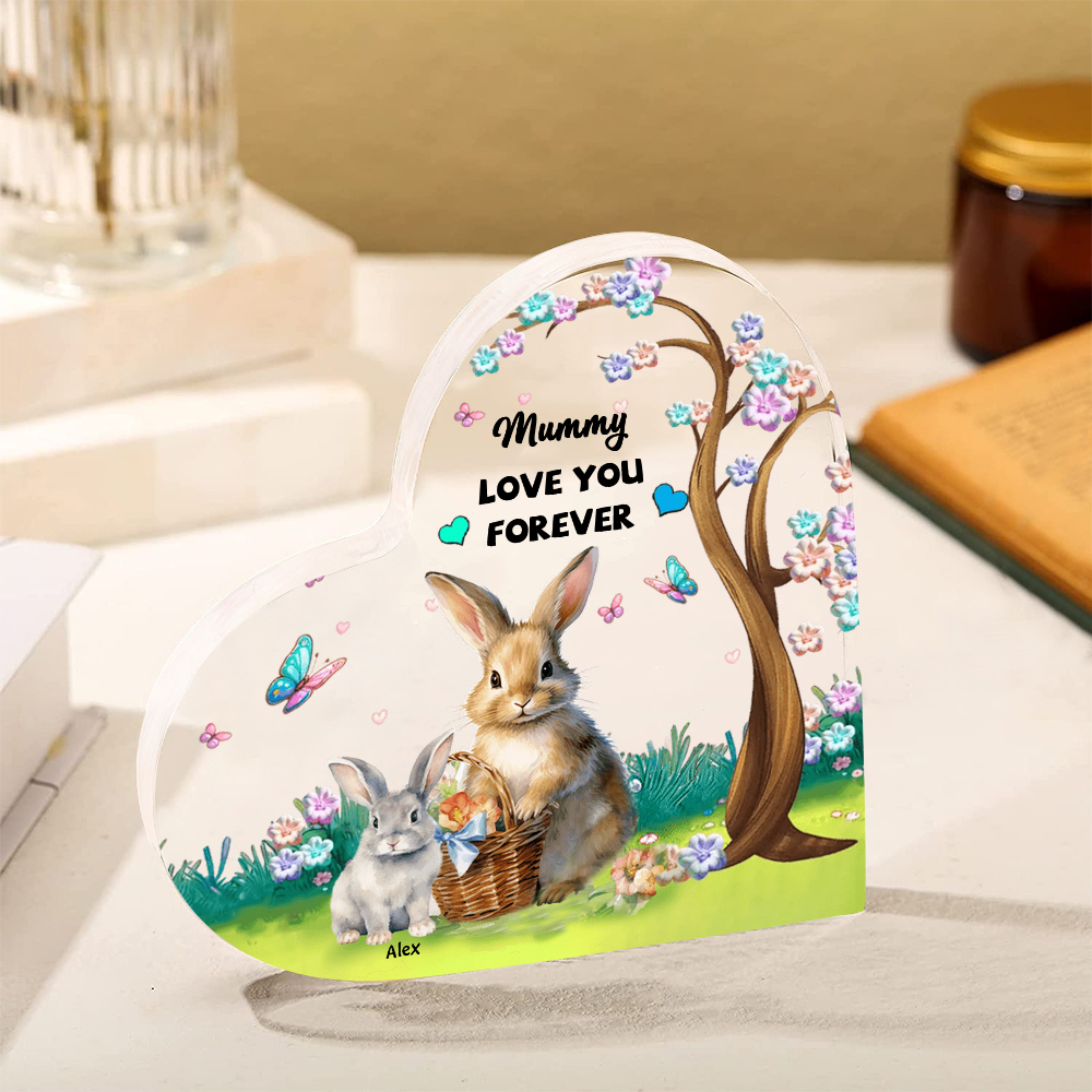 1 Name - Personalized Acrylic Heart Keepsake Custom Text Bunny Family Ornament Gifts for Mother/Grandma