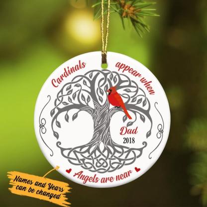 Cardinal Memorial Ornament Custom Name Gift "Cardinals Apper When Angels Are Near "