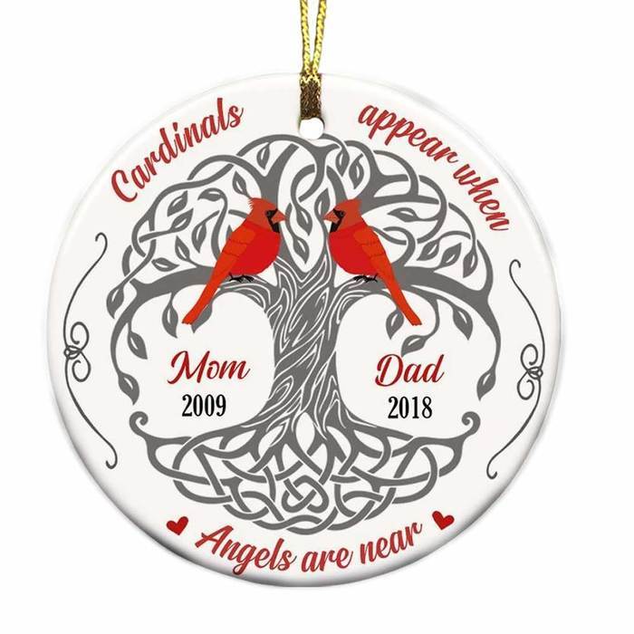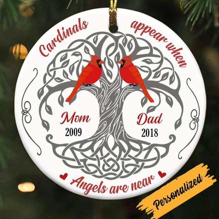 Cardinal Ornament Custom Names Memorial Gift "Cardinals Apper When Angels Are Near "