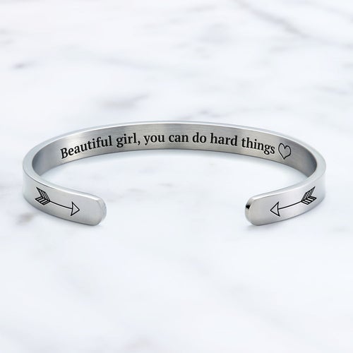 Cuff Bracelet for Her "Beautiful Girl You Can Do Hard Things"
