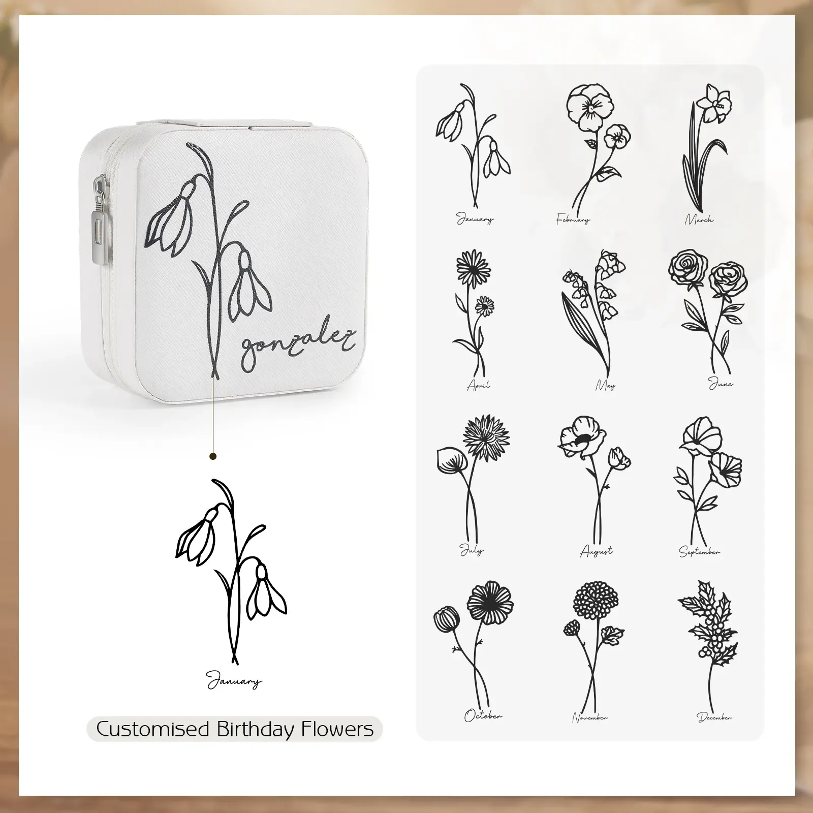 Custom Name Jewelry Gift Box with Birth Flower Personalized Travel Jewelry Box White Box