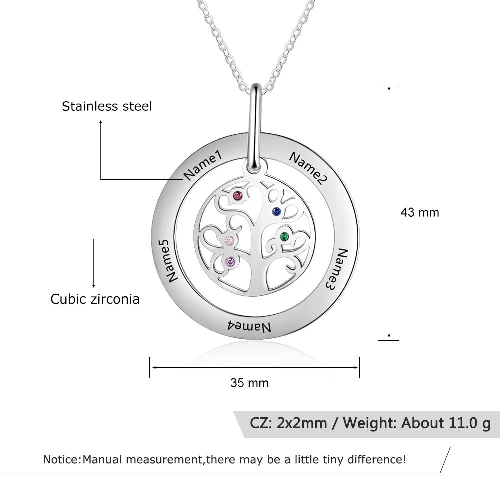 Family Tree Necklace 5 Stones Personbalized Engraved with 5 Names Birthstones Necklace for Mom