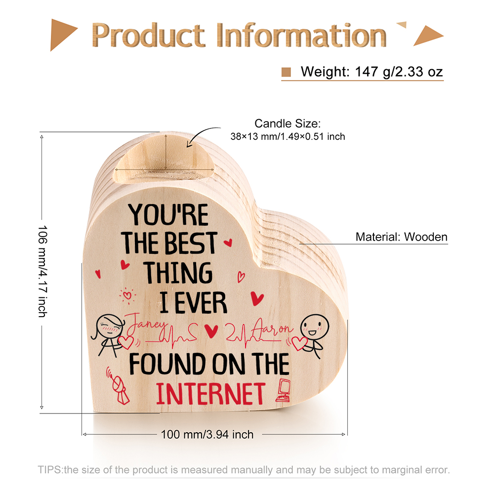 Line Art Couple Candle Holder Custom 2 Names Wooden Candlesticks Romantic Gifts - You're The Best Thing I Ever Found On The Internet