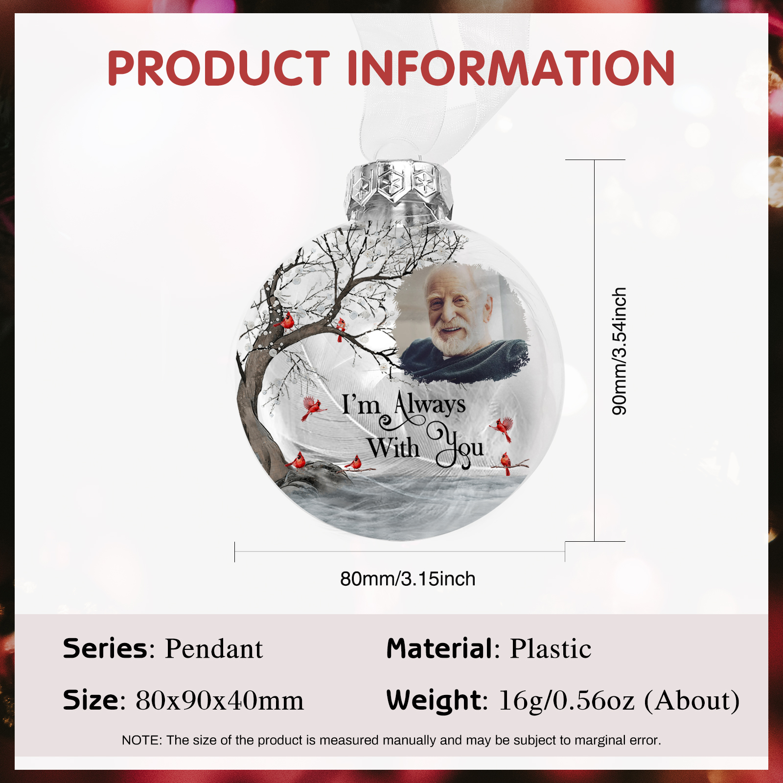 Memorial Ball Feather Ornaments Custom Photo Christmas Hanging Ornament - I'm Always With You