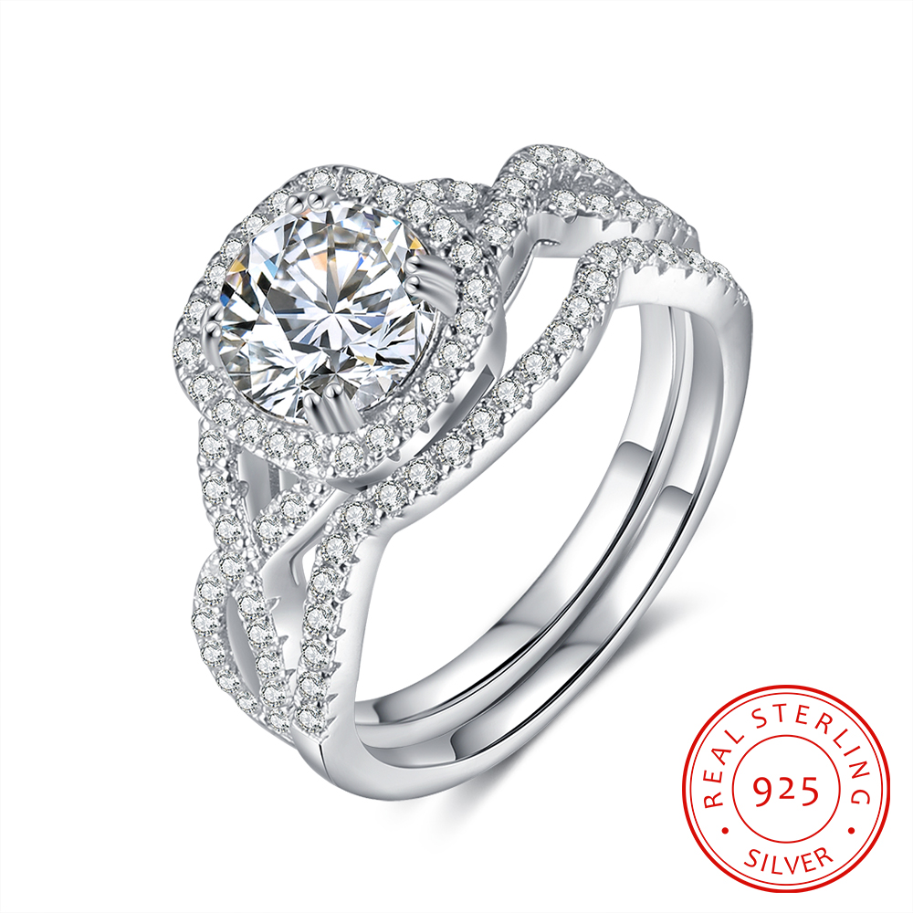 Moissanite Diamond Halo Ring Set Dainty Engagement Ring