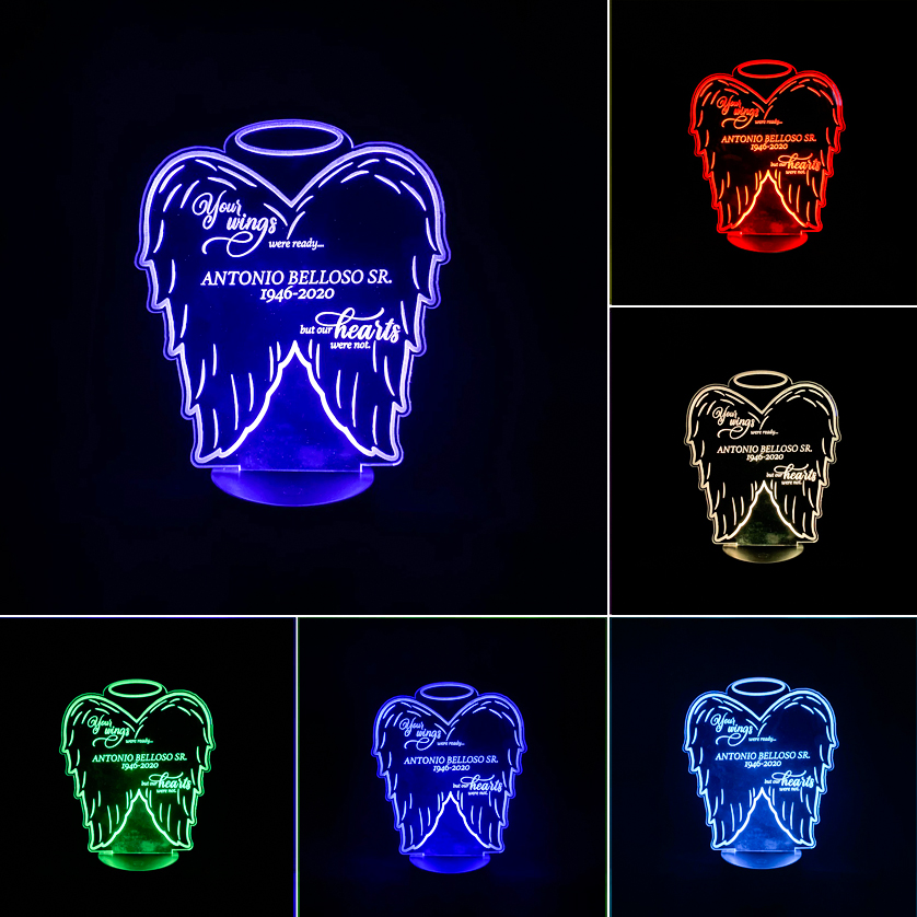 Personalized Angel Wings Night Light Custom Texts Memorial Gifts