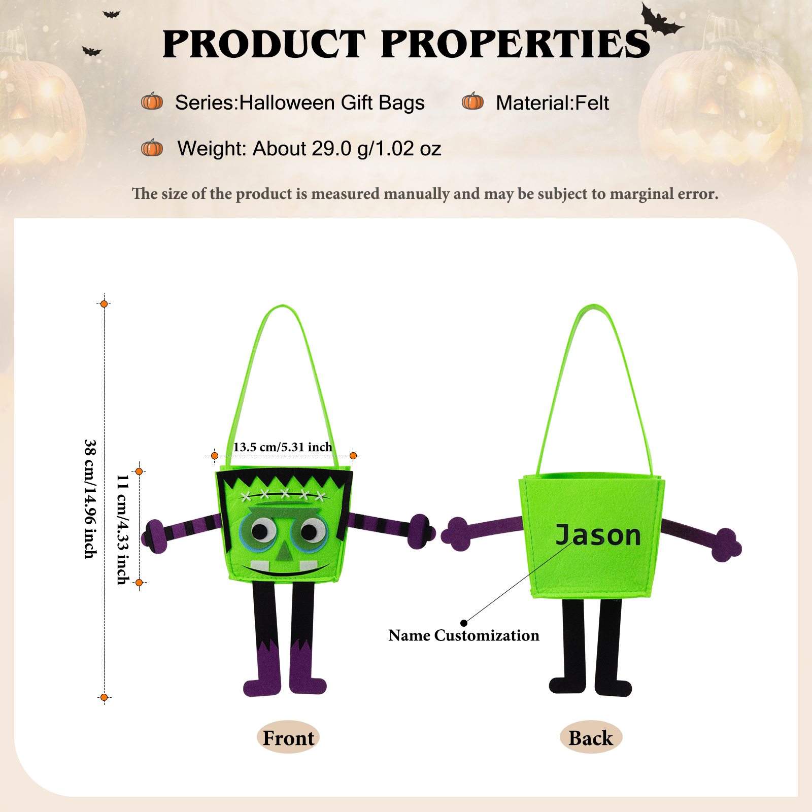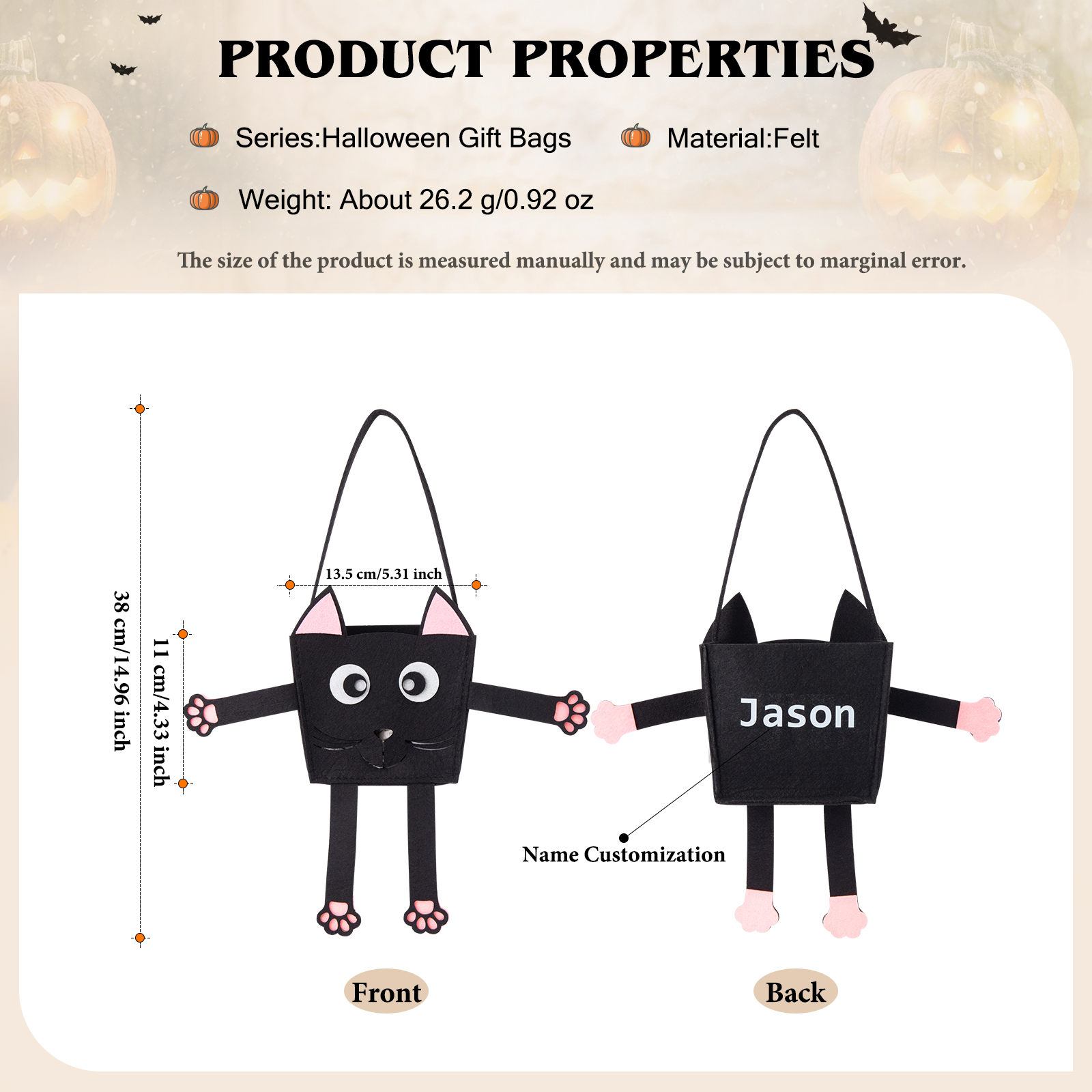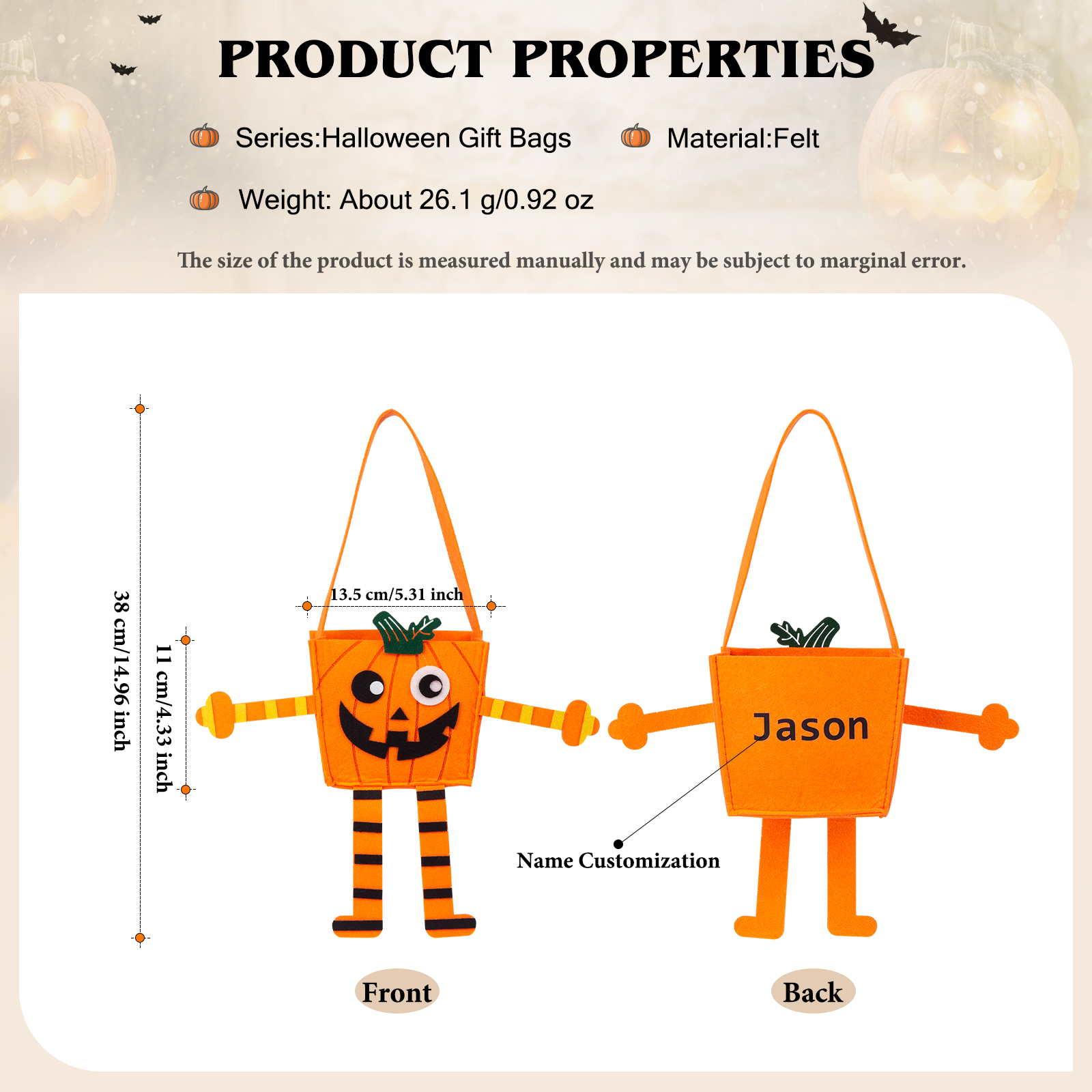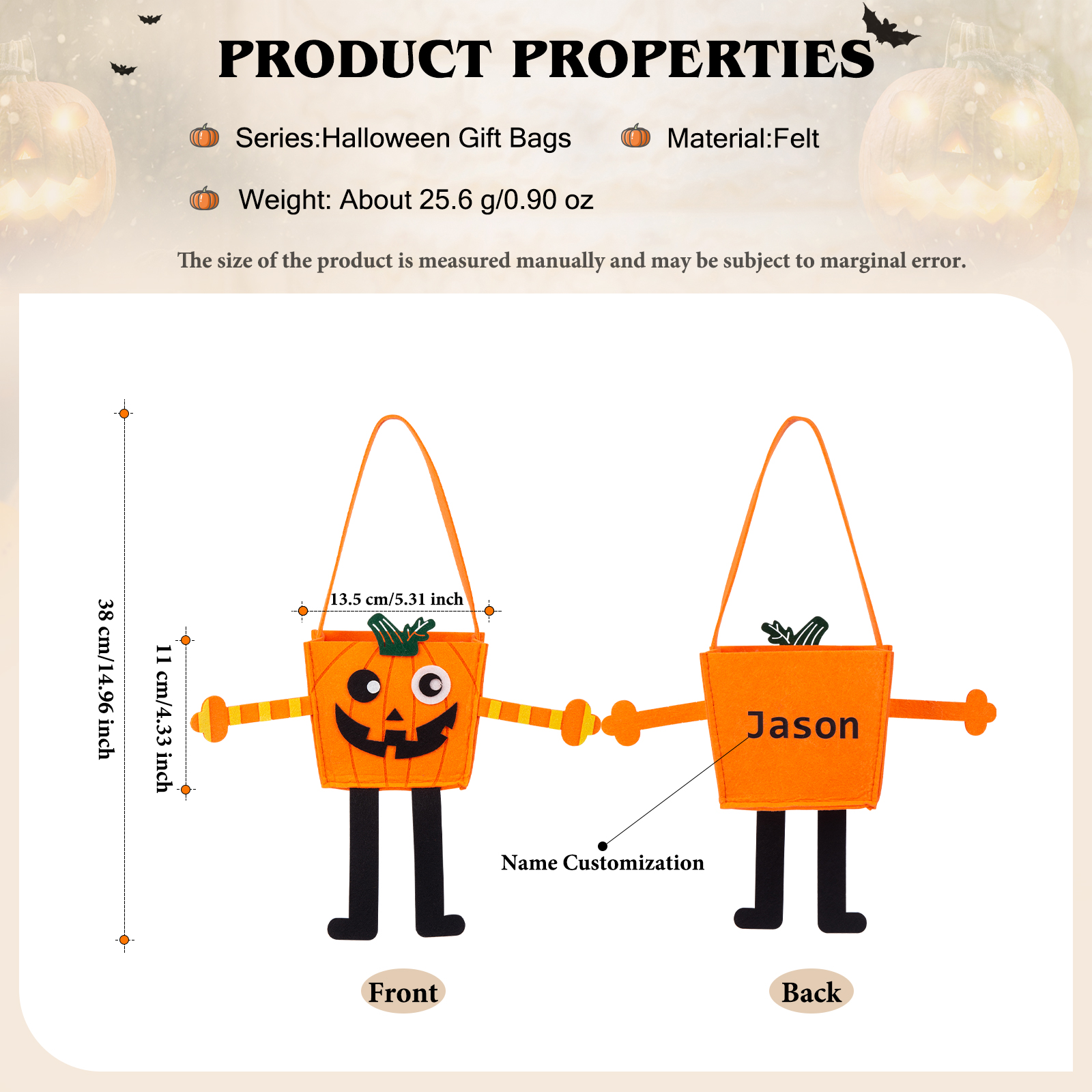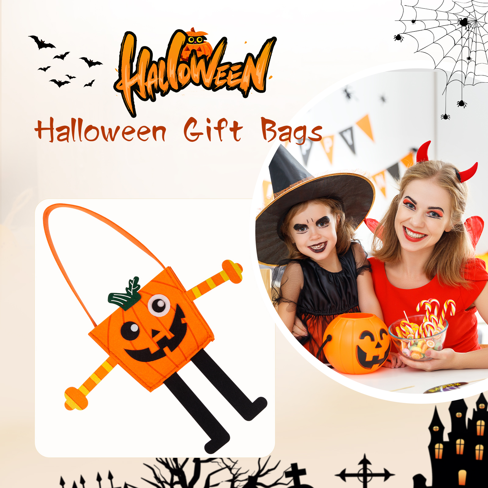 Personalized Halloween Tote Bags Custom 1 Name Halloween Party Supplies Halloween Trick or Treat Candy Bags for Kids
