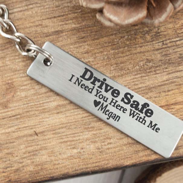 Personalized Name Keychain "Drive Safe I Need You Here With Me"