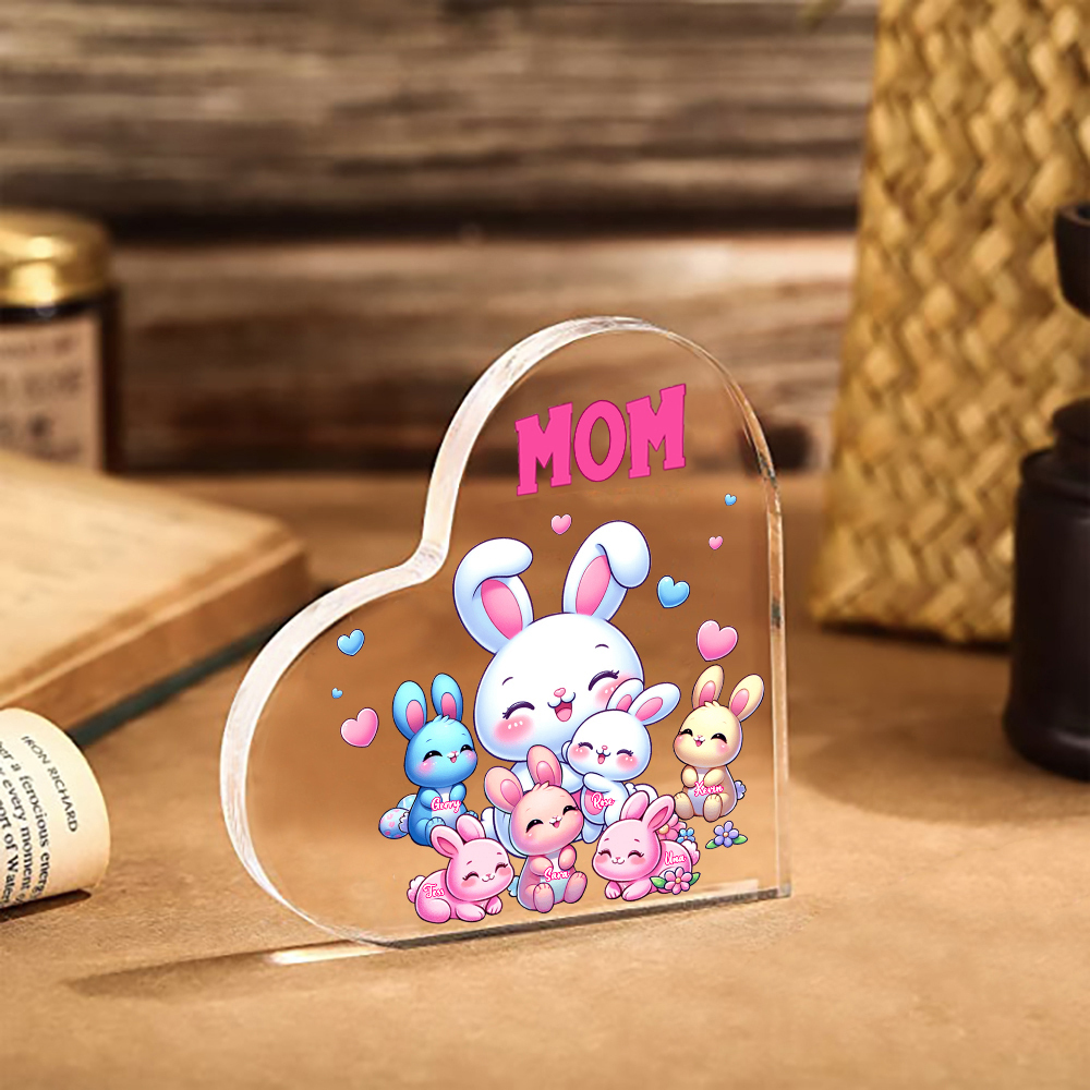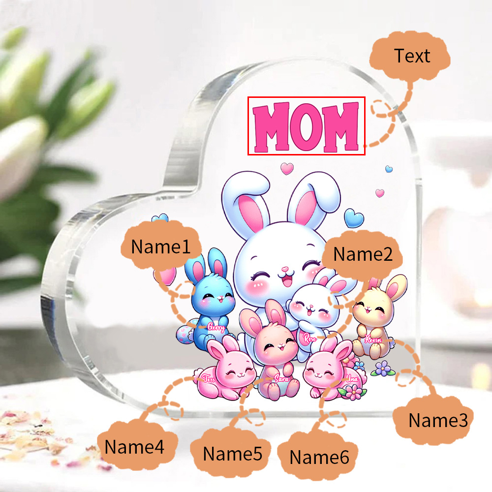 Personalized Text Acrylic Heart Keepsake Custom 6 Names Ornament Bunny Family Gifts For Mother/Grandma