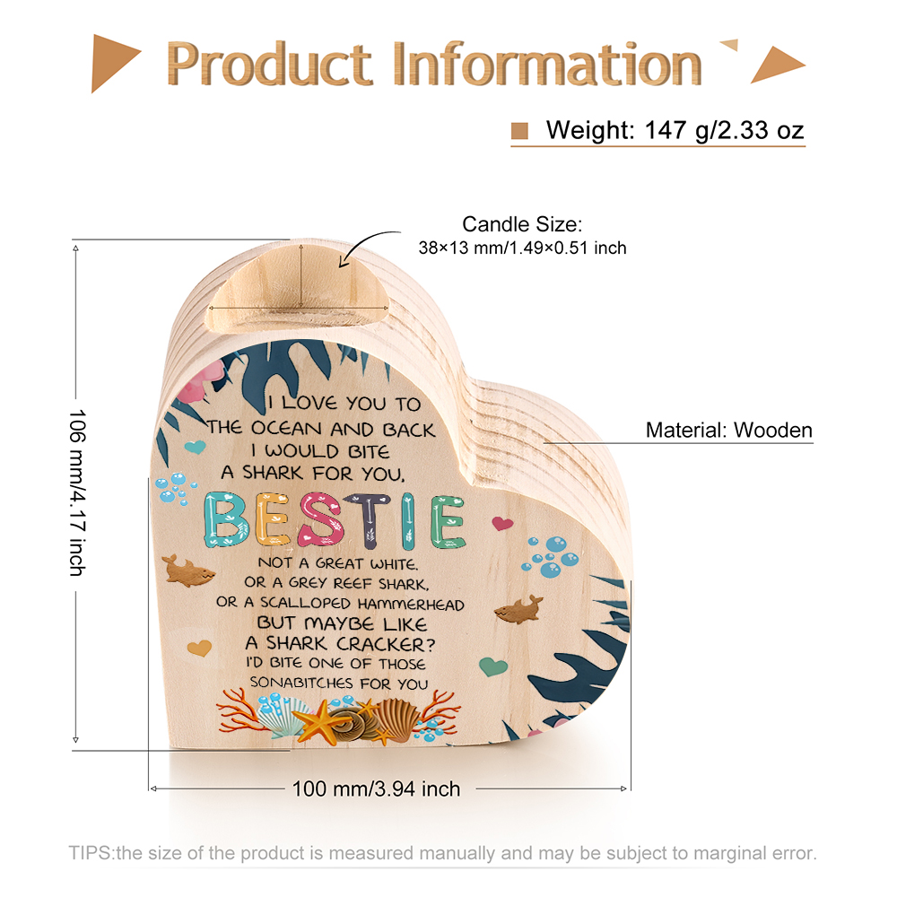 To My Bestie Candle Holder Wooden Candlesticks - I Love You To The Ocean And Back I Would Bite A Shark For You