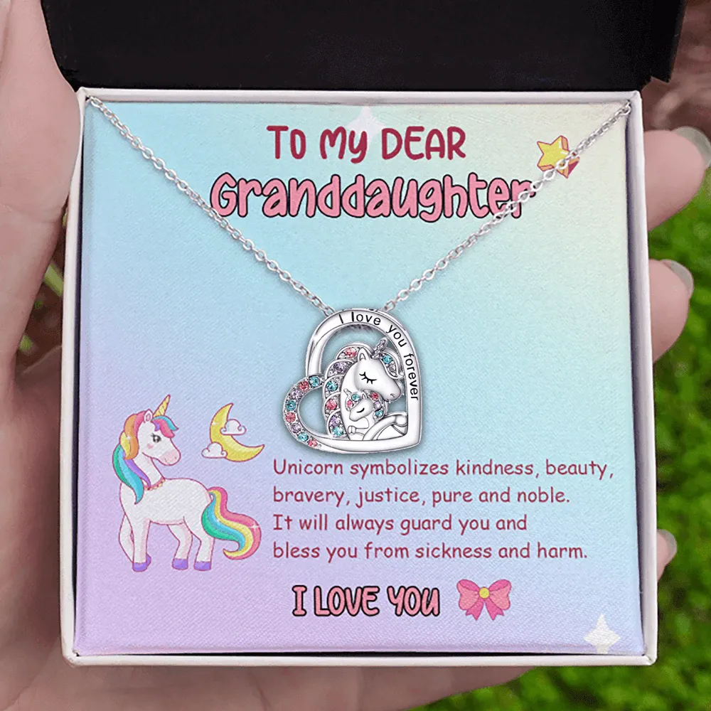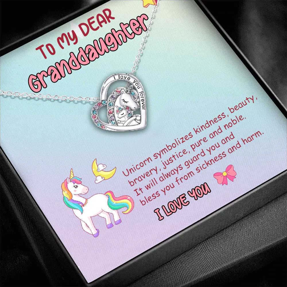 To My Dear Granddaughter Heart Unicorn Necklace
