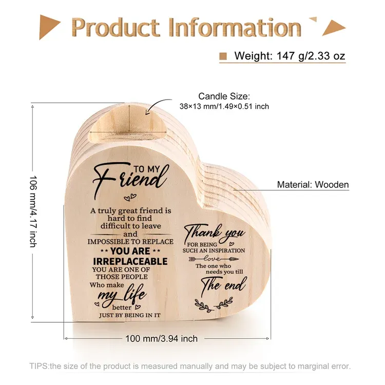 To My Friend Heart Candle Holder The One Who Needs You Till The End Wooden Candlestick