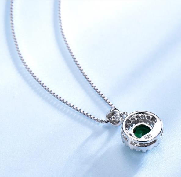 Vintage Emerald Necklace with Diamond In Sterling Silver
