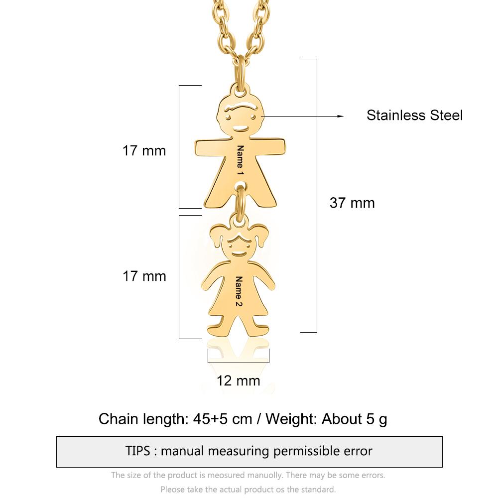 Mother Necklace with 2 Children Charms Engraved 2 Names