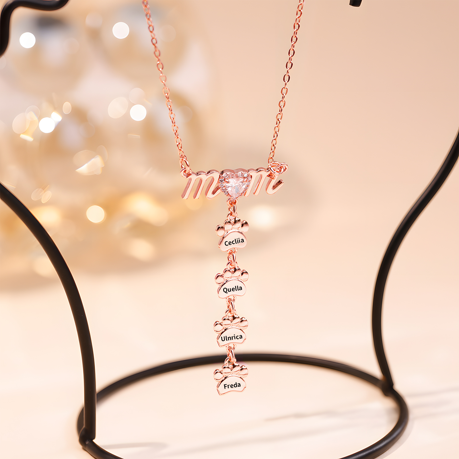 Personalized 4 Names Paw Pendant Necklace Custom Mom Necklace Mother's Day Gift for Her