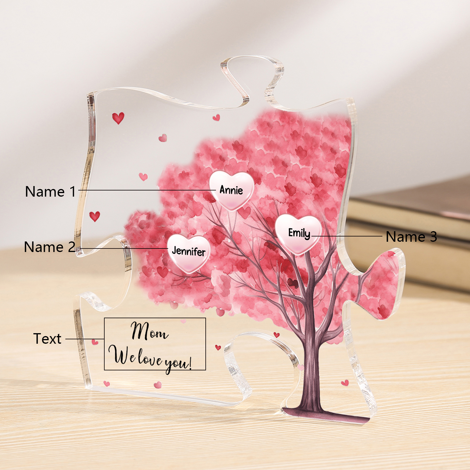 Personalized Acrylic Puzzle Plaque Custom 3 Names & 1 Text Pink Tree Family Ornament Gift for Mom/Grandma