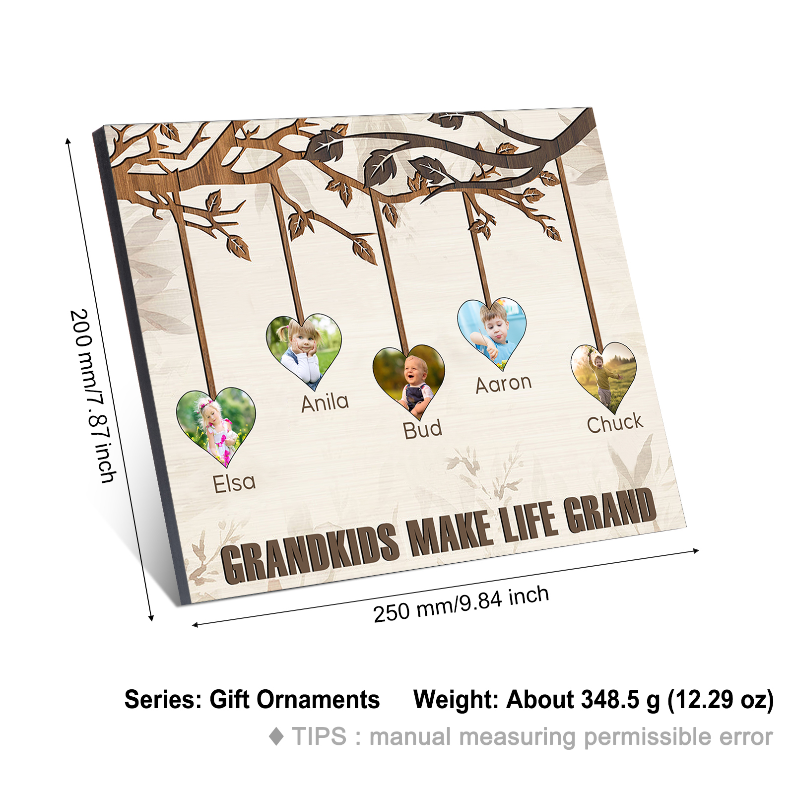 Personalized Family Tree Wall Art Frame Custom 5 Names 5 Photos Wood Panel Painting Wooden Gift for Family
