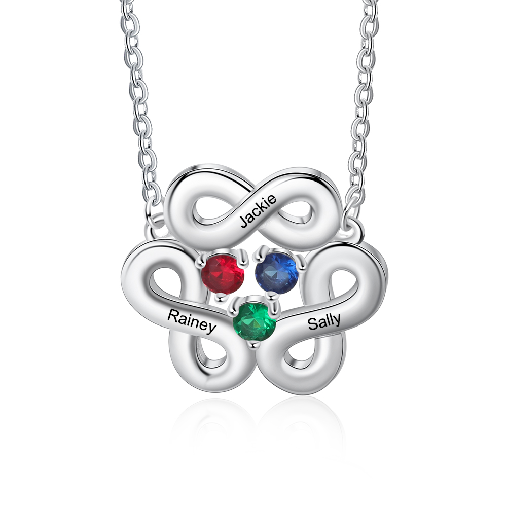 Personalized Infinity Necklace with 3 Birthstones Family Necklace for Mom