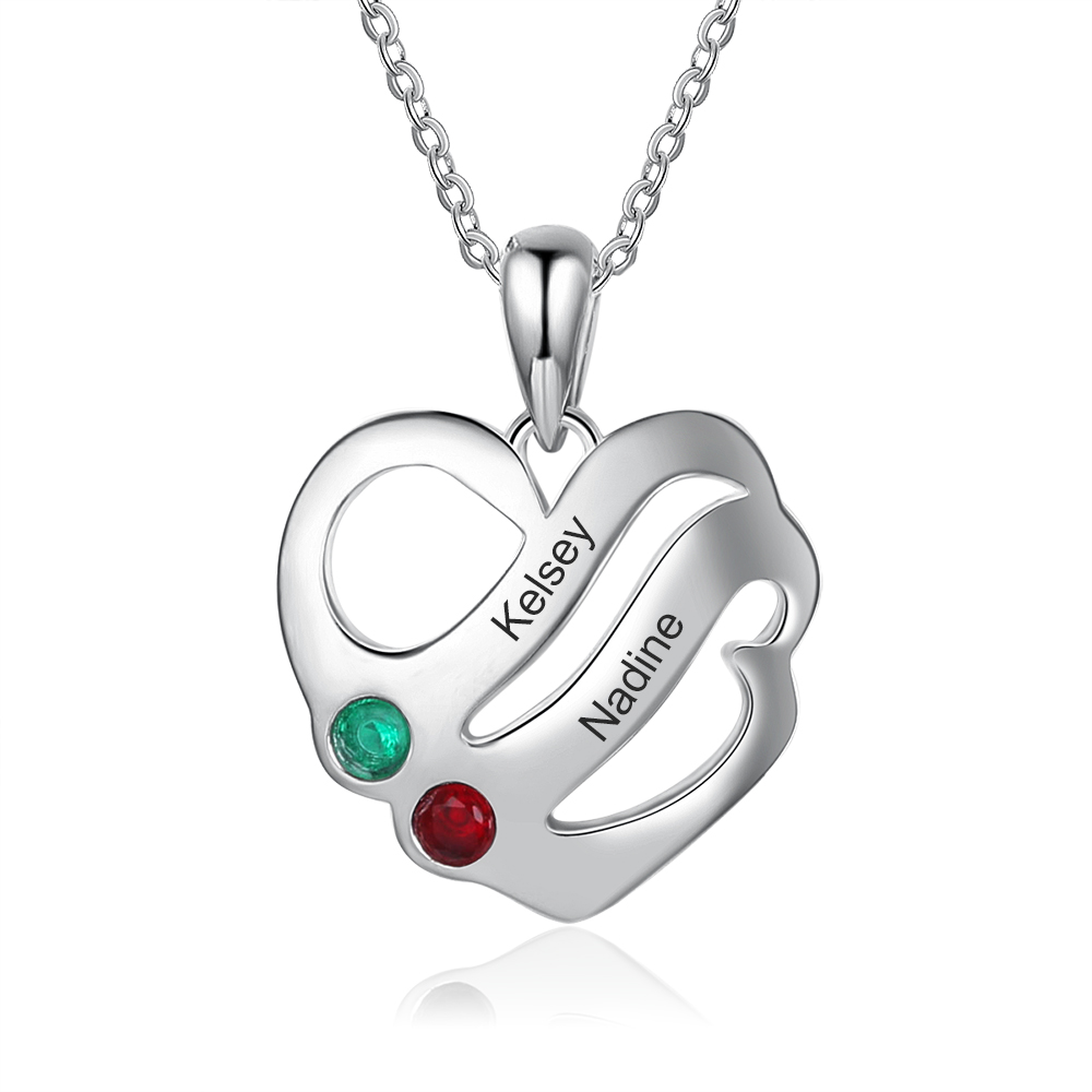 Heart Necklace Mother Necklace 2 Names 2 Birthstones Love Gifts for Her