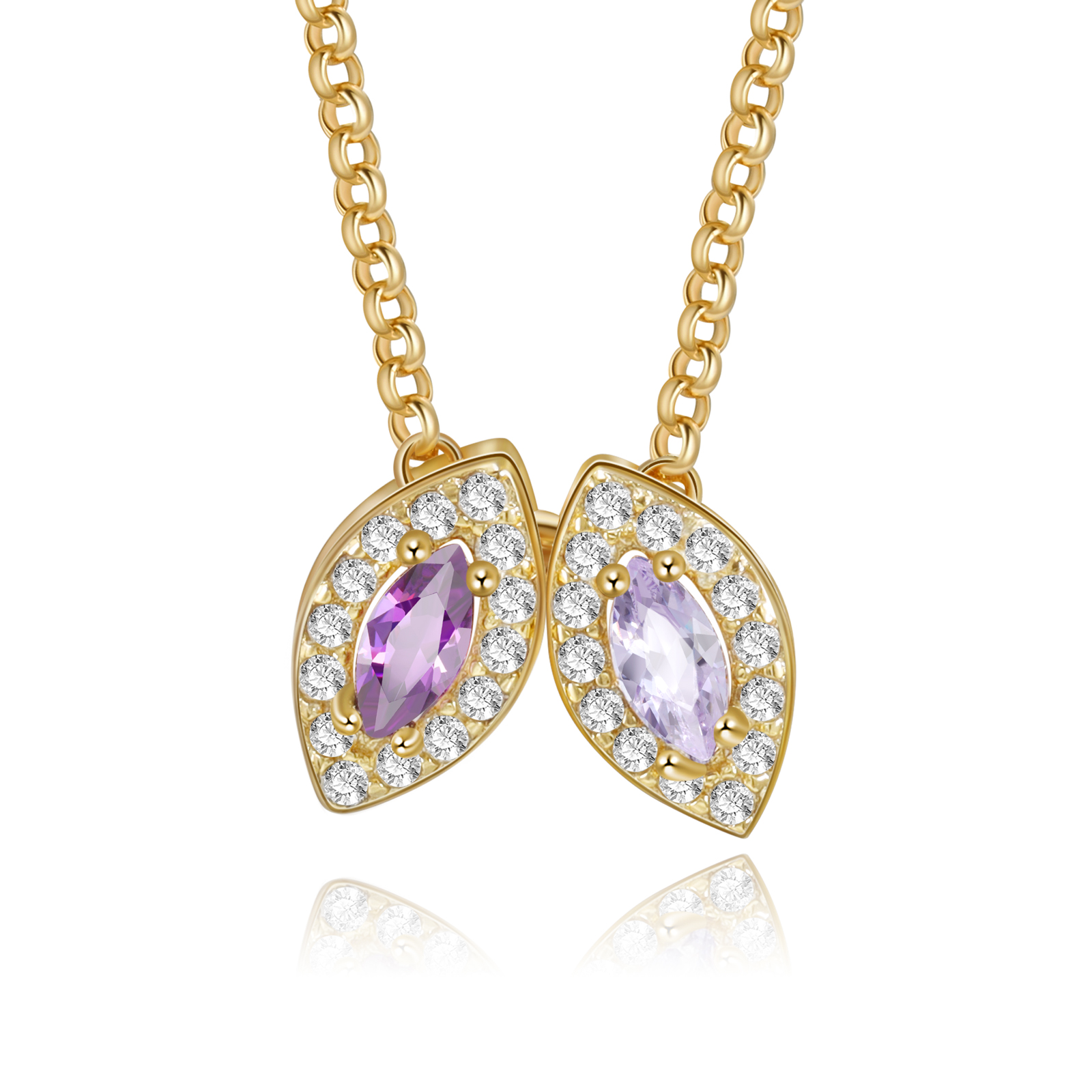 Personalized Two Leaf Clover Heart Necklace with 2 Birthstones Gifts for Mom