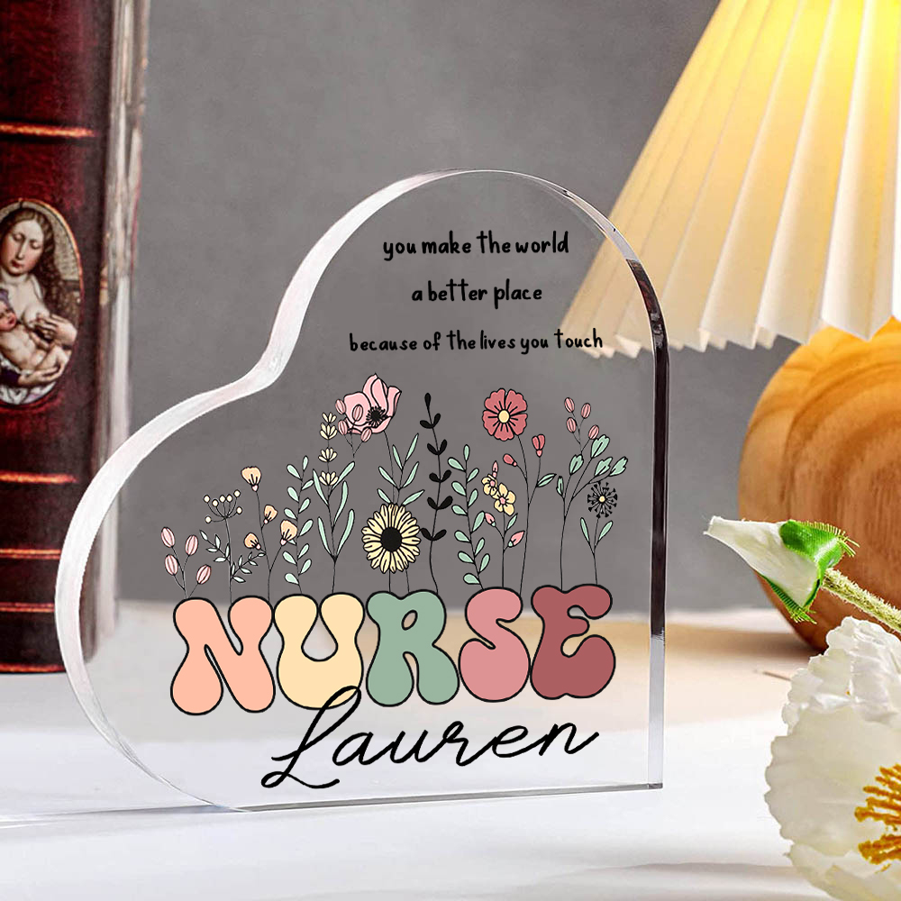Acrylic Heart Keepsake Custom Name Ornament Gifts for Nurses - You Make The World A Better Place Because of The Lives You Touch