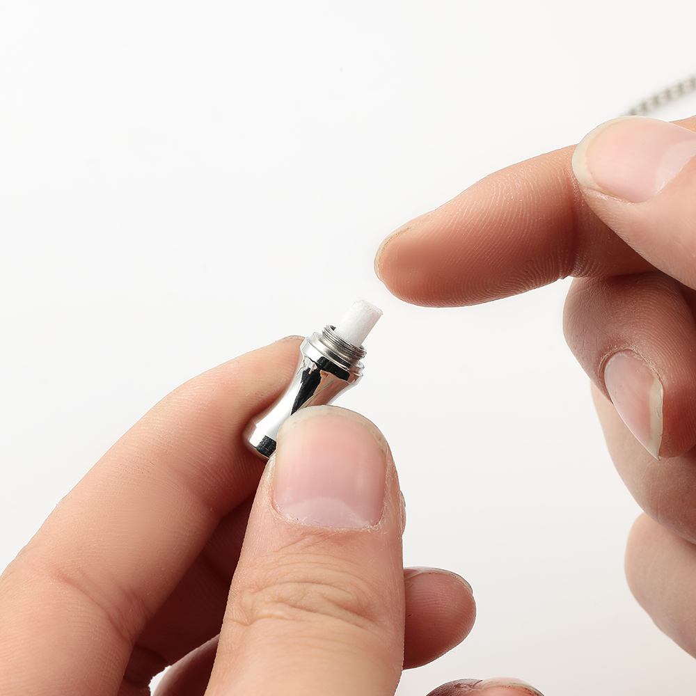 • In the box: Breathing pendant, replacement core, instruction booklet, cotton bag, gift box