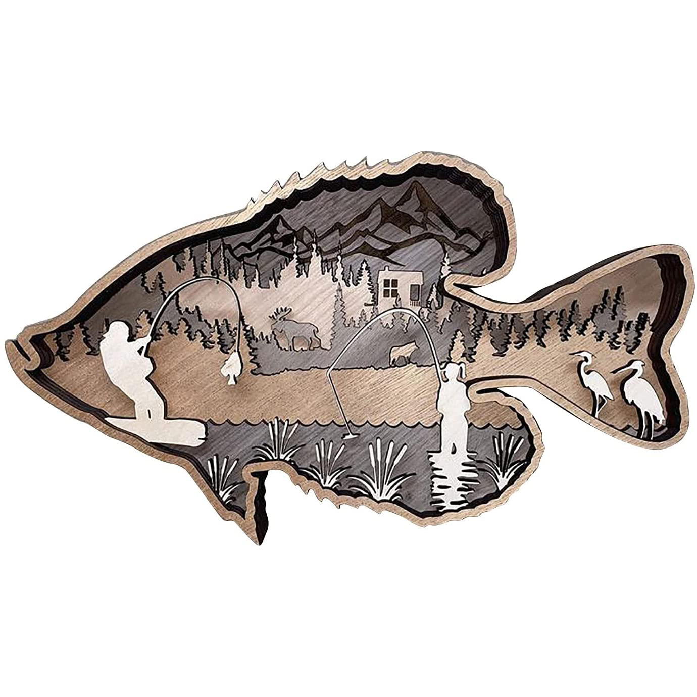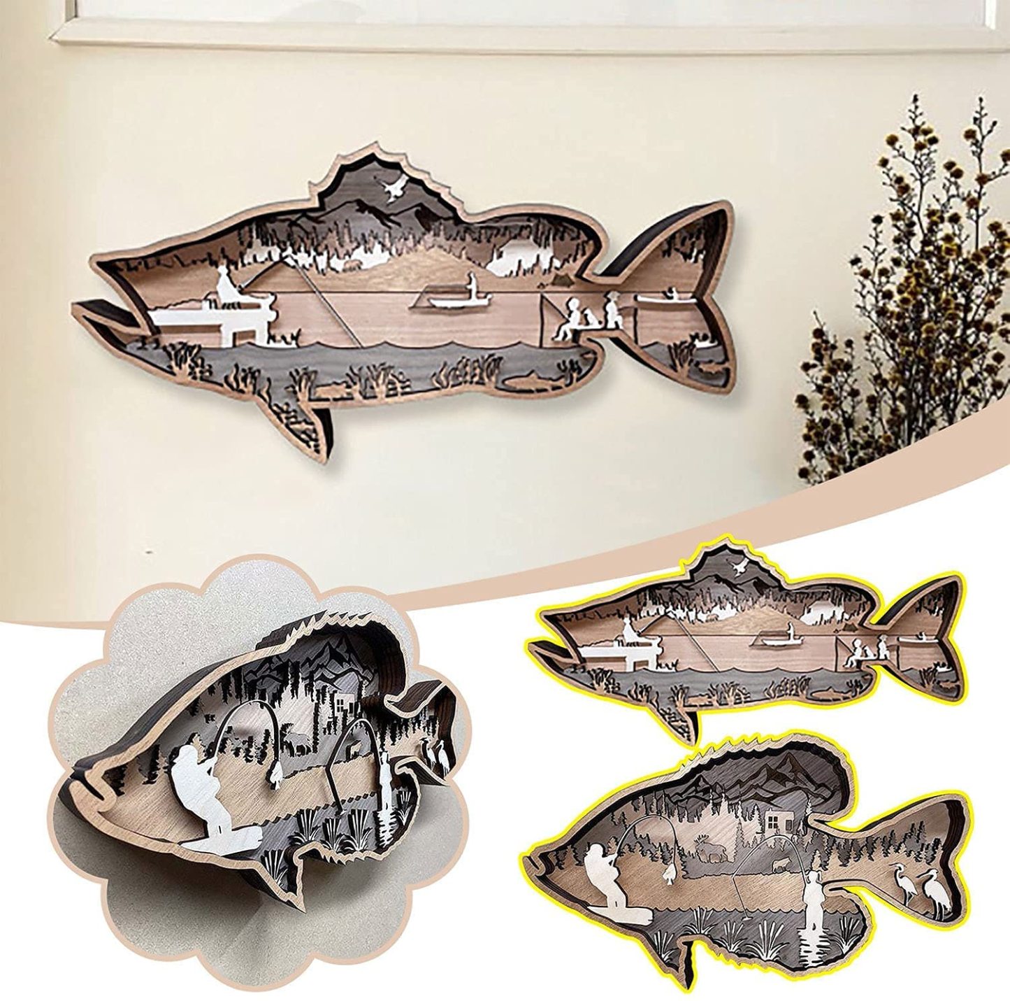 Fish Wooden Home Decoration Vintage 3D Carving Wall Hanging