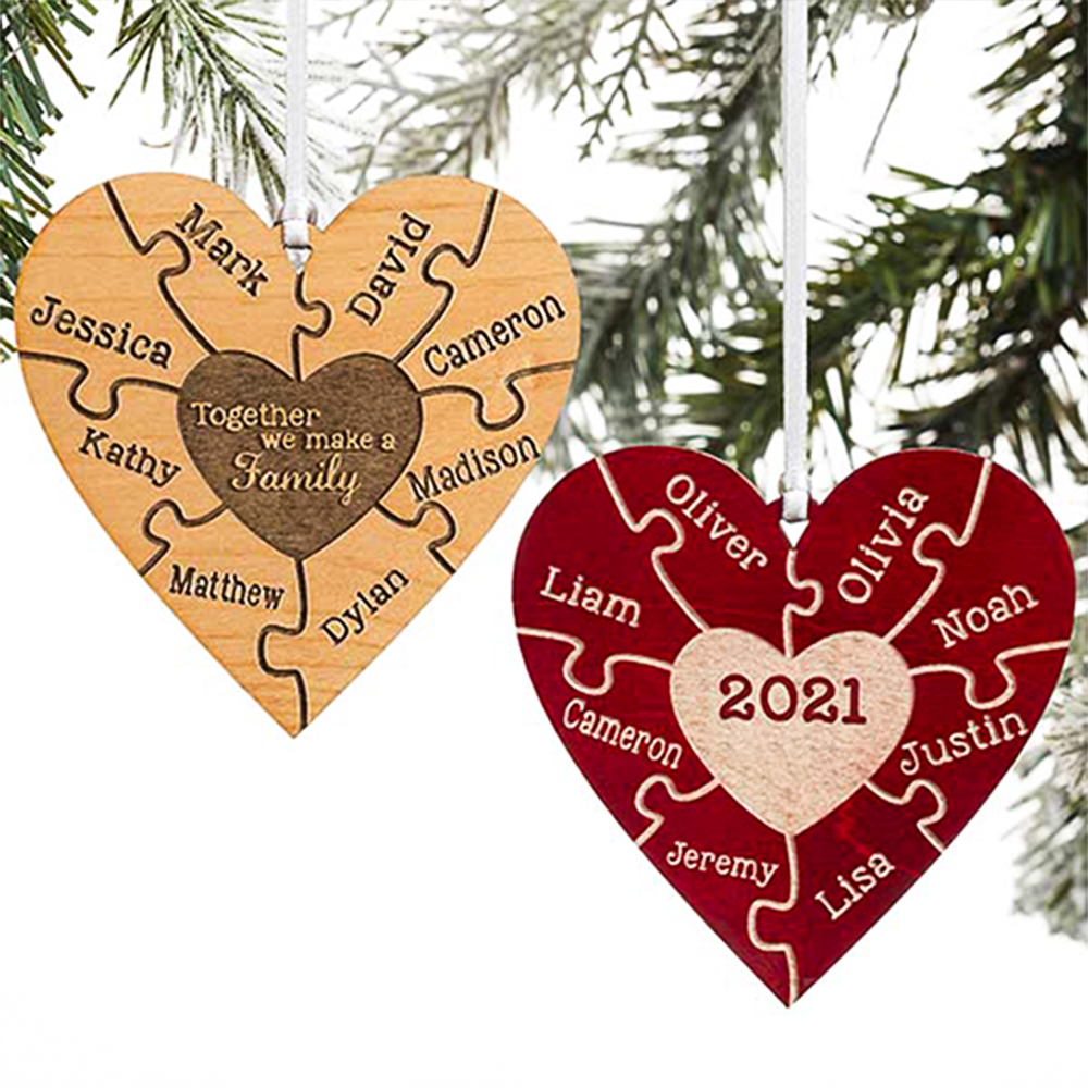 Heart Puzzle Ornament Personalized 2 Names Wooden Family Ornament