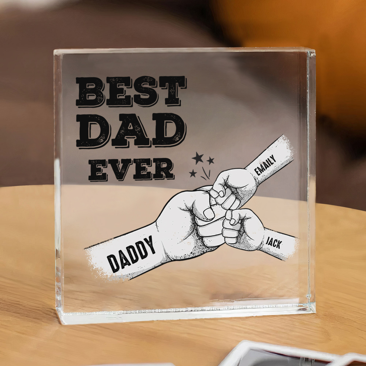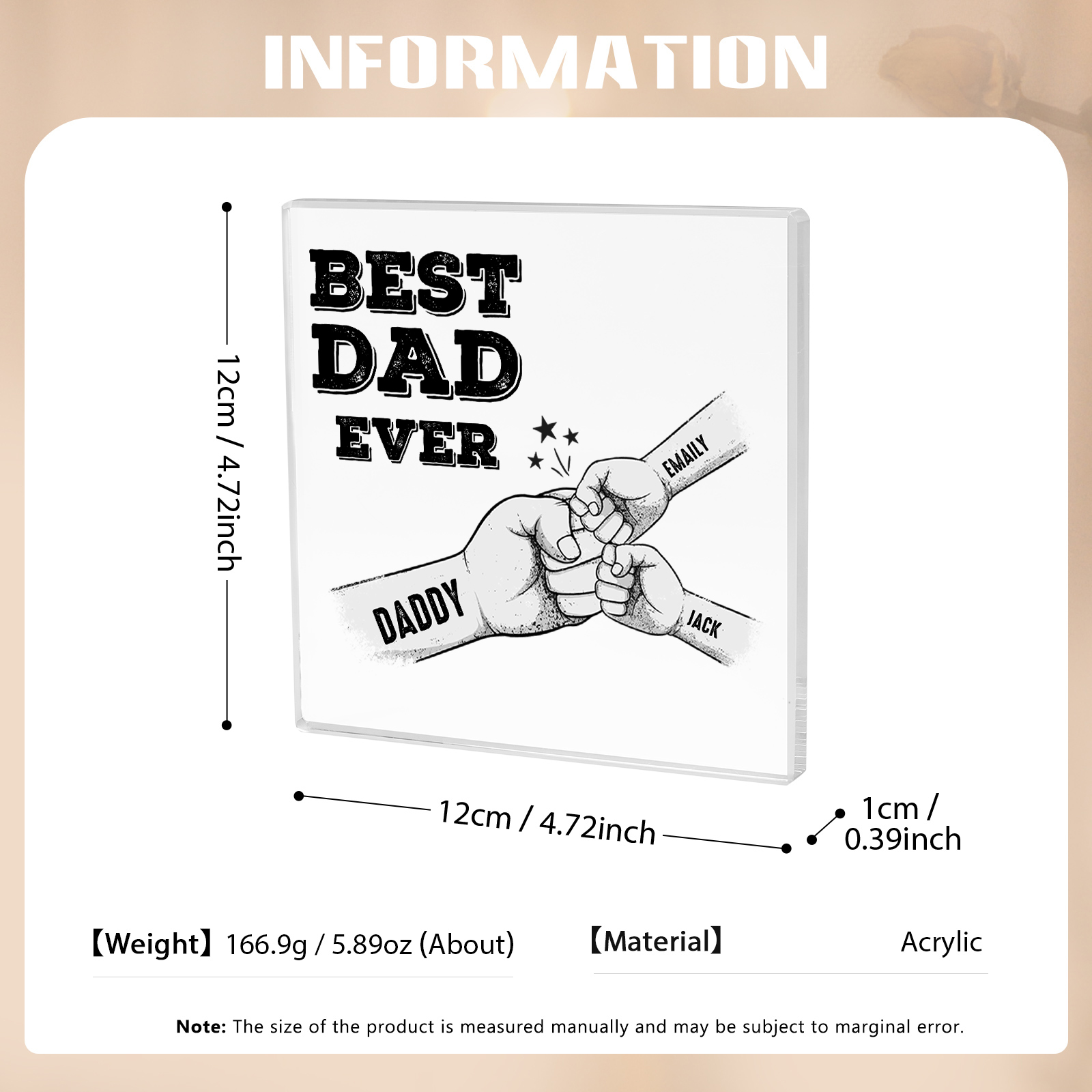 Personalized 3 Names Acrylic Square Keepsake Fist Bump Rectangle Plaque Father's Day Gifts - Best Dad Ever