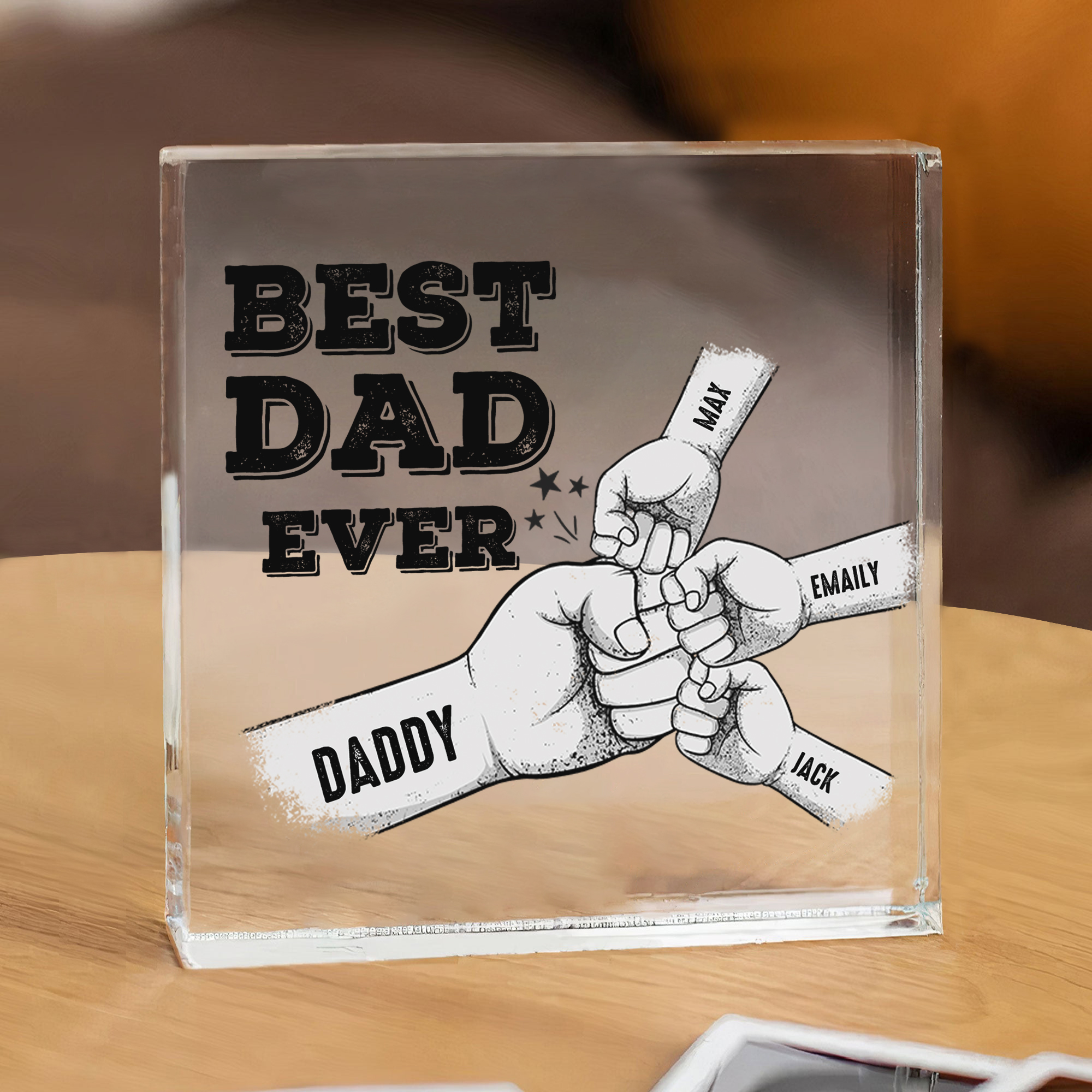 Personalized 4 Names Acrylic Square Keepsake Fist Bump Rectangle Plaque Father's Day Gifts - Best Dad Ever