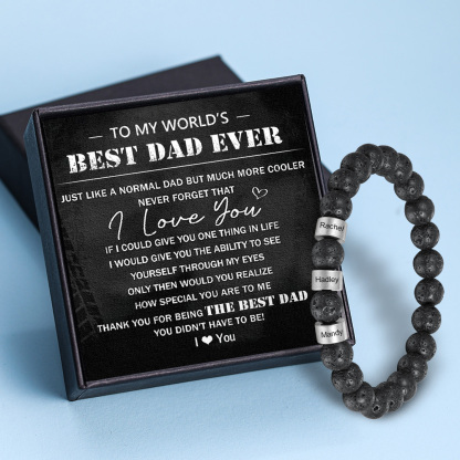 Personalized Beaded Men's Bracelet Custom 3 Names Black Onyx Bracelet Tiger Eye Bracelet Gift for Dad