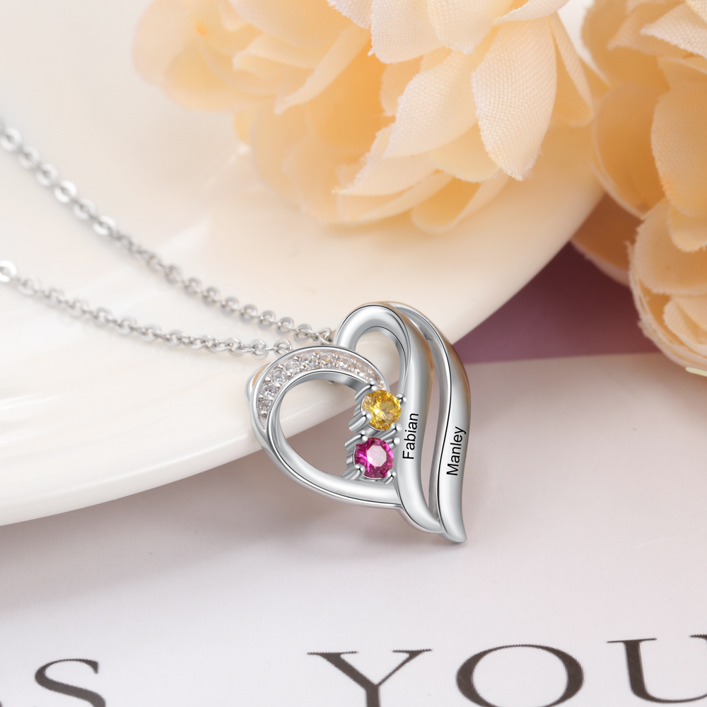 Personalized Love Heart Necklace with 2 Birthstones Necklace