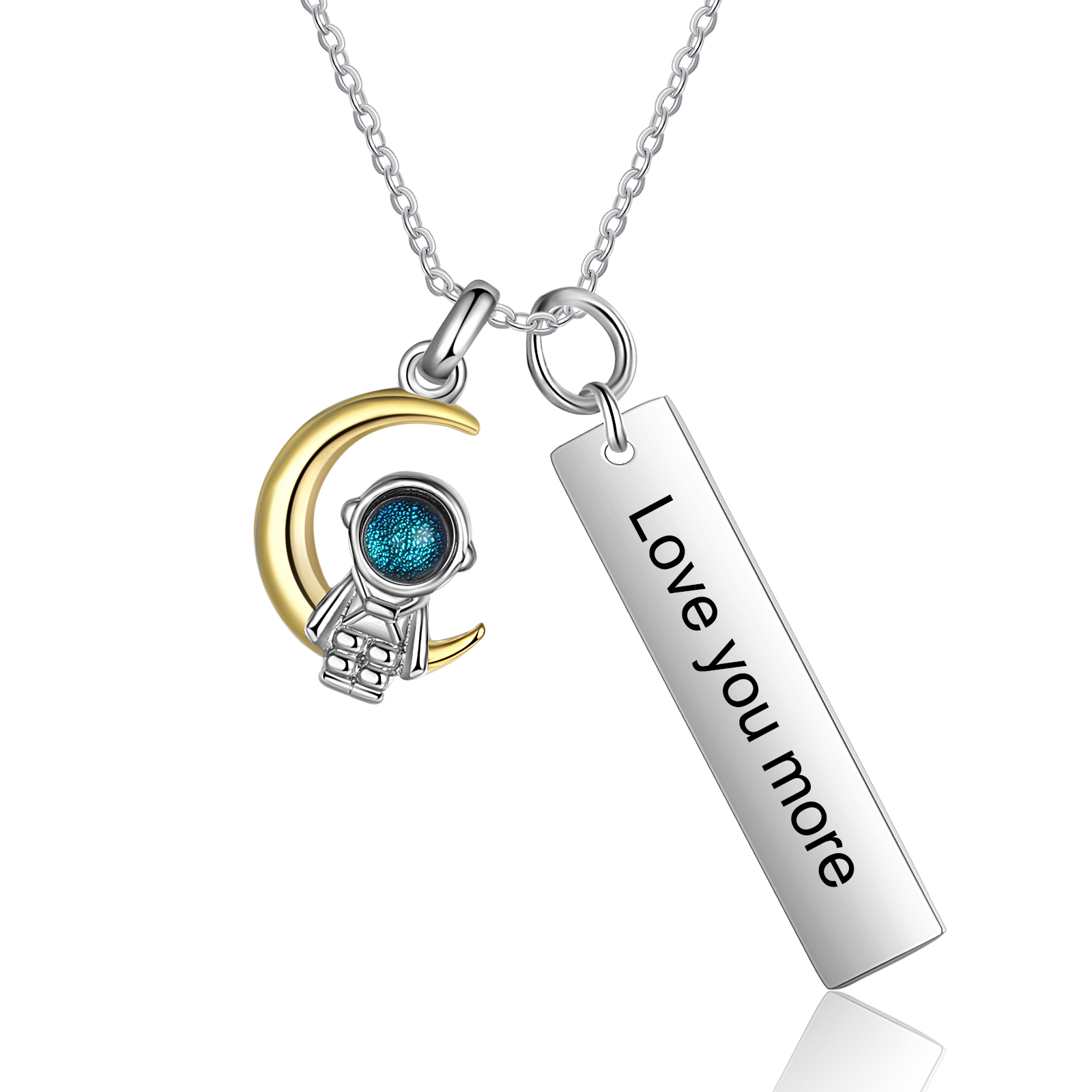 Personalized Couple Necklace with Astronaut with Moon Star Pendant Custom Name Necklace