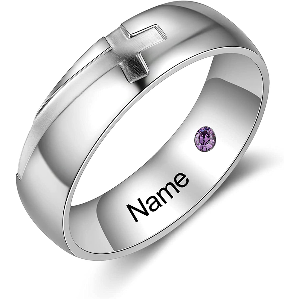 Custom Cross Ring Custom Name and Birthstone Ring