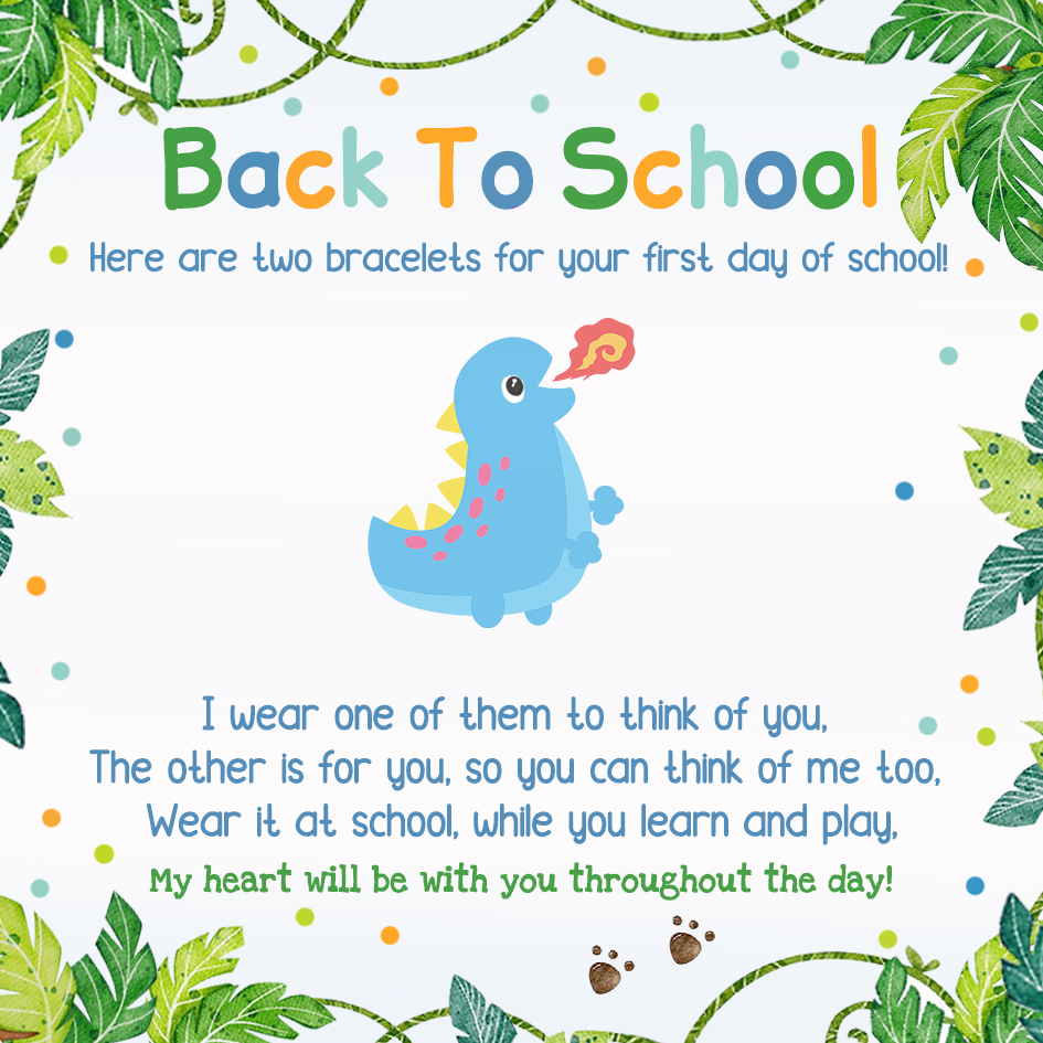 2 Pcs Bracelet Set Custom Names Red Dinosaur Charm Hair Ties Back To School Gift for Girls - My Heart Will Be With You Throughout The Day