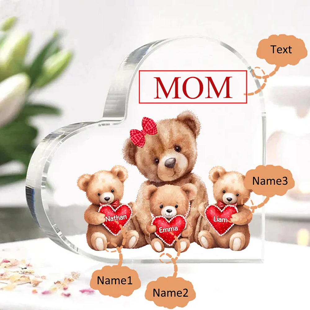 3 Names - Personalized Acrylic Heart Keepsake Custom Text Teddy Bear Ornaments Gifts for Grandma/Mother