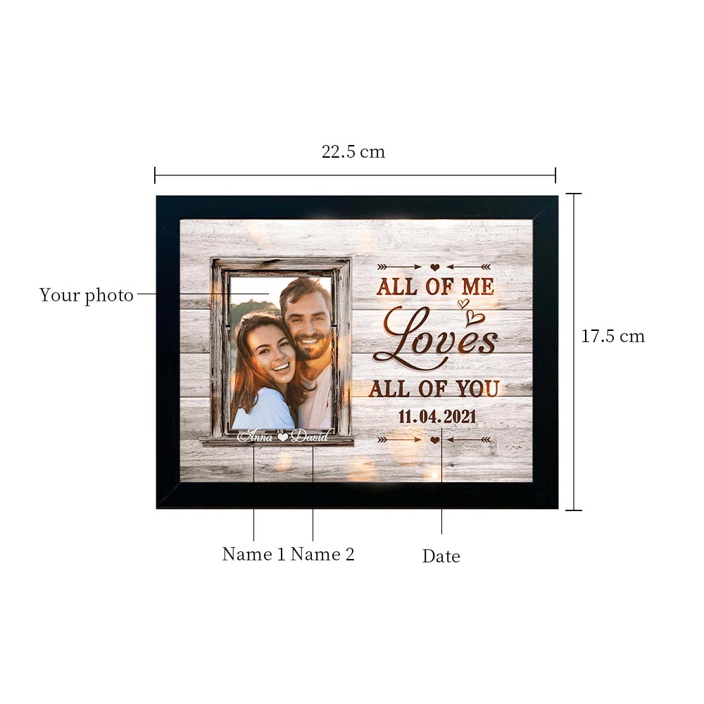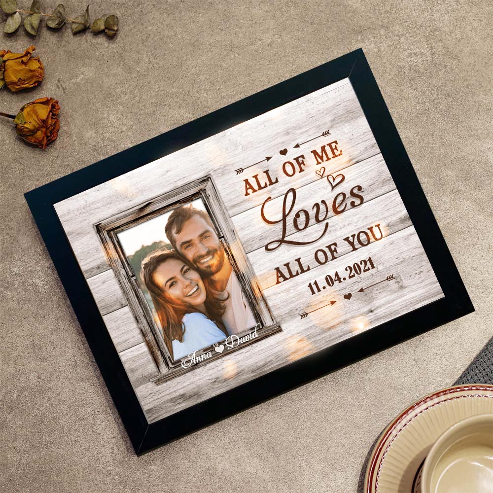 All of Me Loves All of You Photo Frame Personalized LED Light Shadow Box Couple Gifts