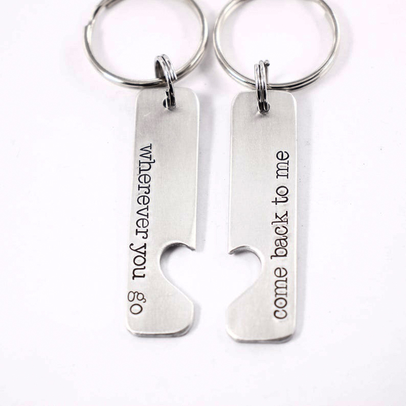 Heart Couples Keychain Set Wherever You Go Come Back To Me Gift