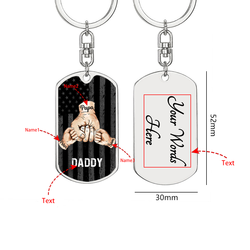 Personalized Fist Bump Keychain Engrave 3 Names For Father/Grandpa