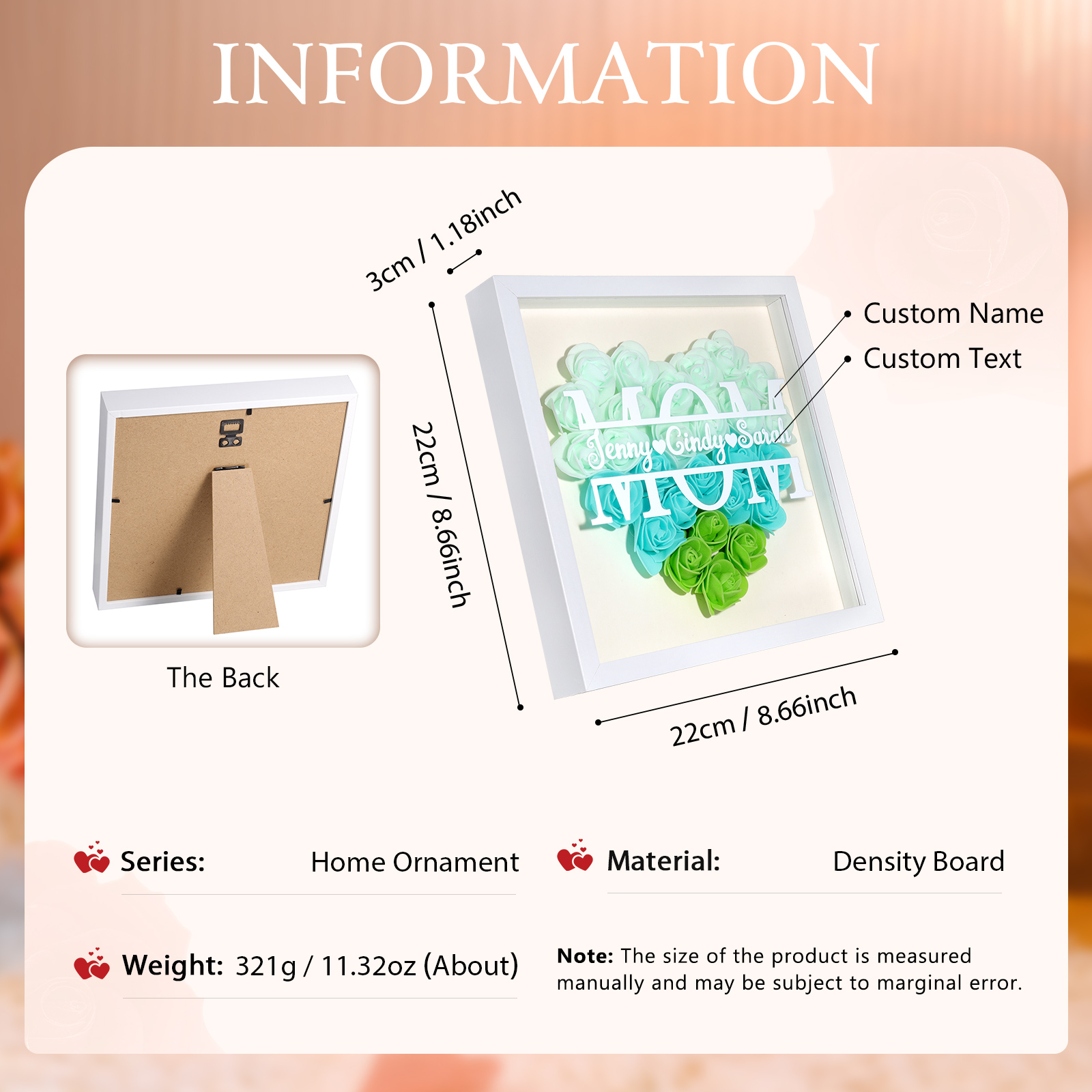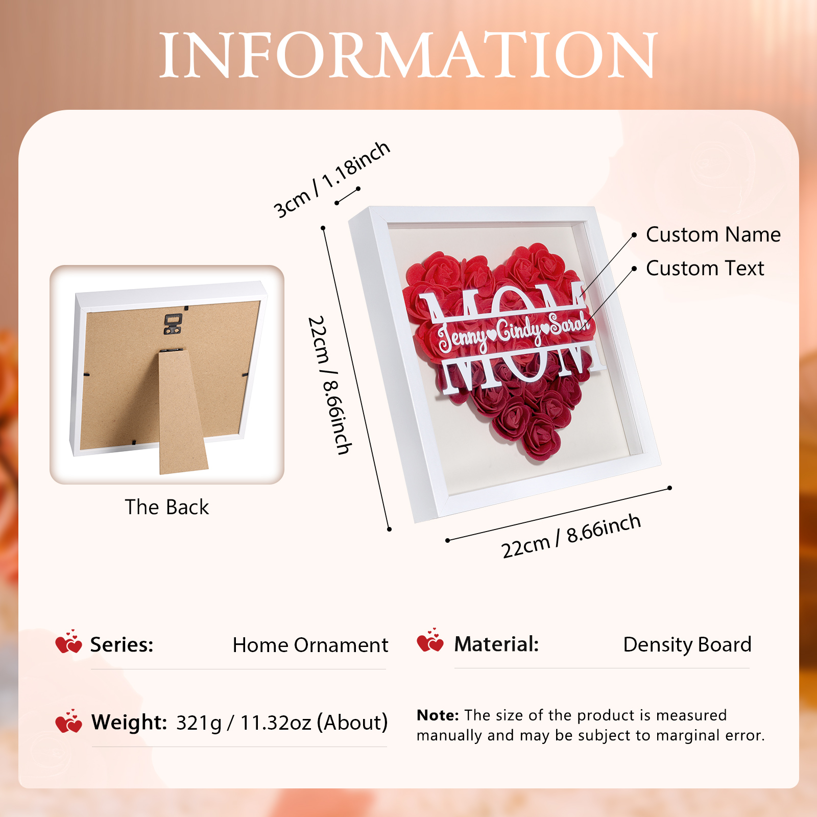 Personalized Flower Shadow Box Custom Name & Text Heart Rose Frame Decorations Mother's Day Gift for Her